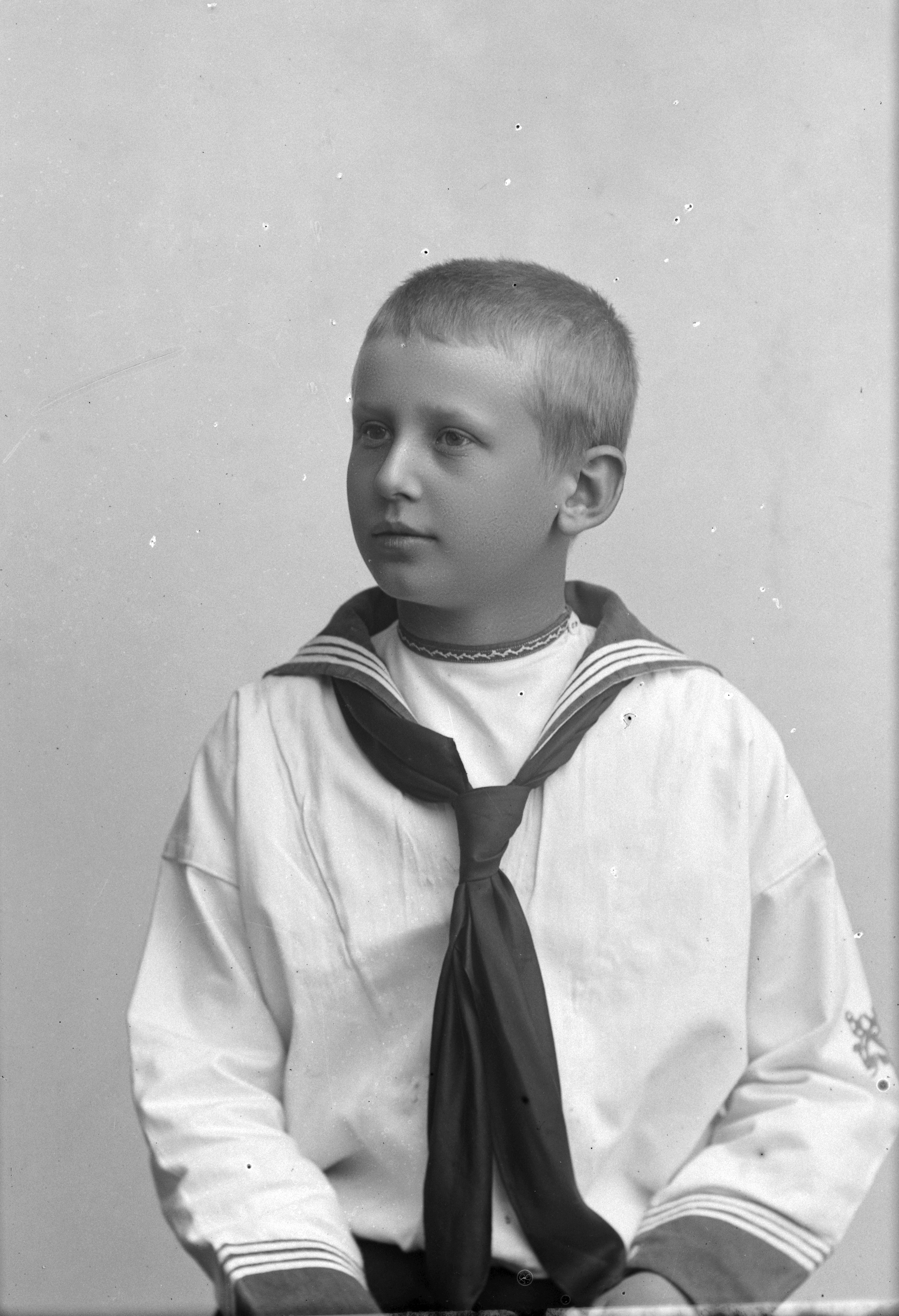 Porträtt i halvfigur av Stig Thott, iklädd sjömanskostym.