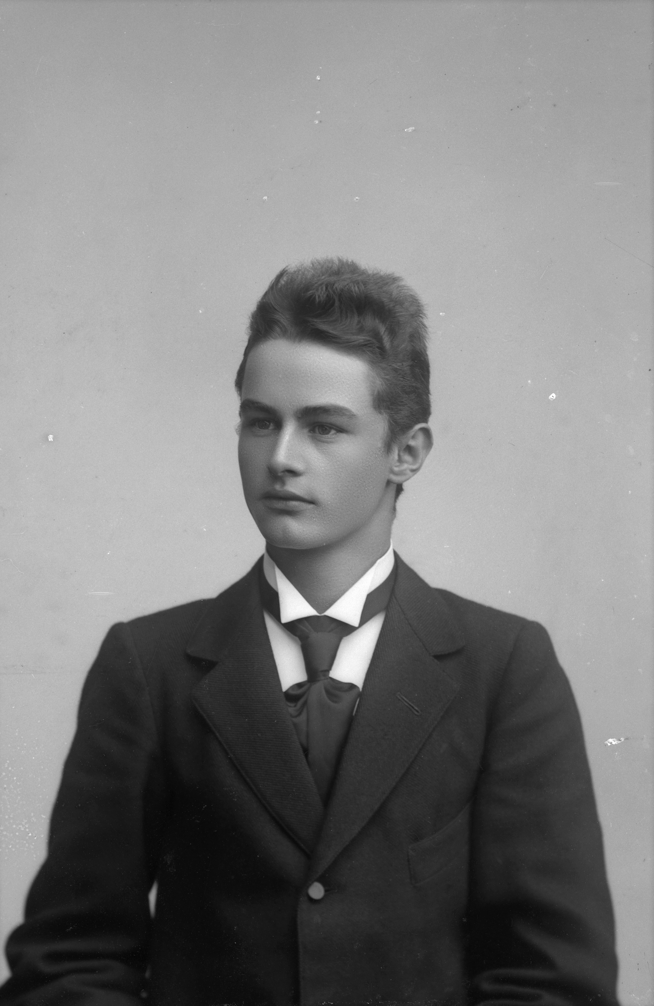 Beskrivning: Porträtt i halvfigur av Svante Larsson.