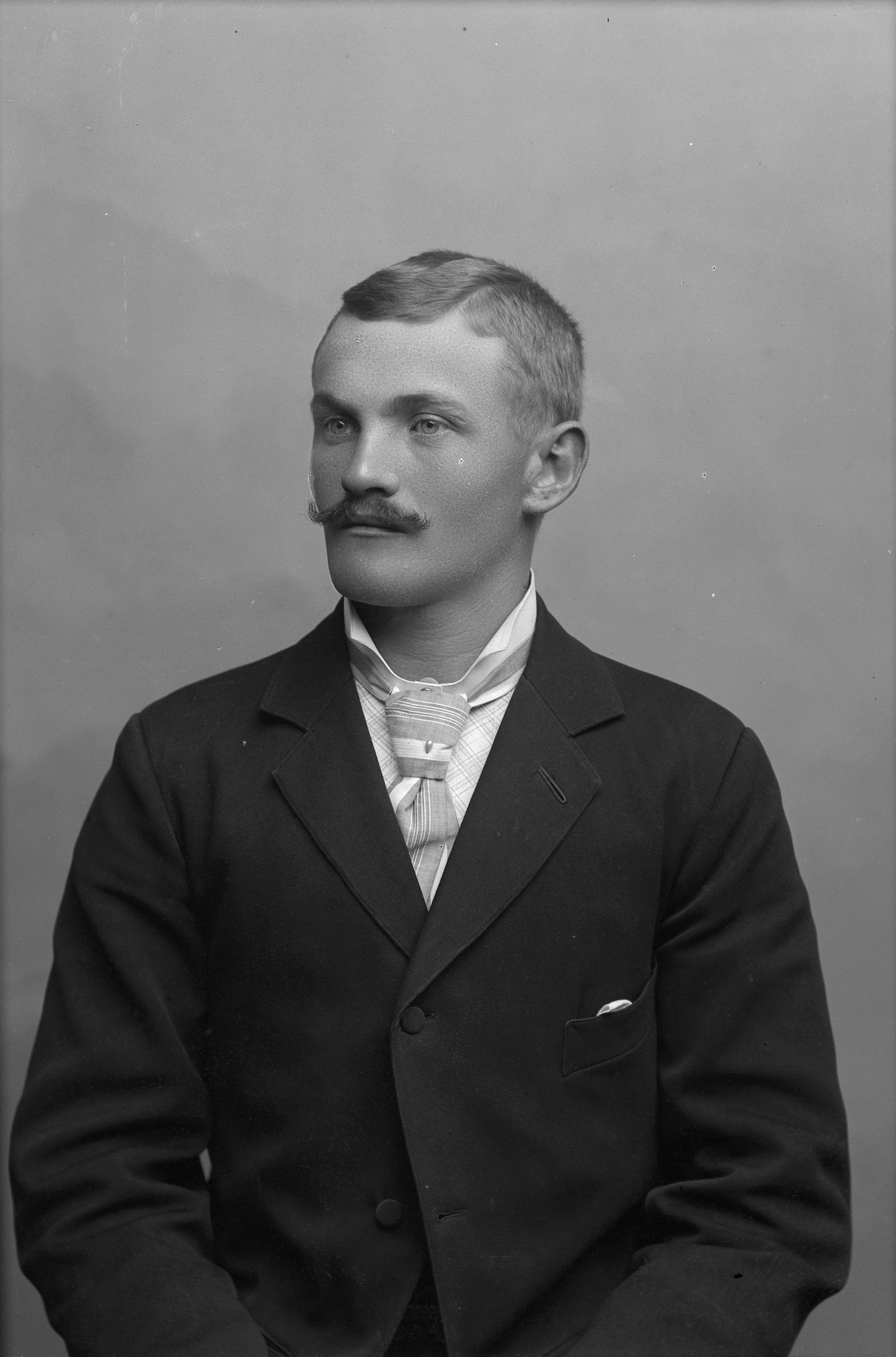 Beskrivning: Porträtt i halvfigur av Gustaf Rönnbom.