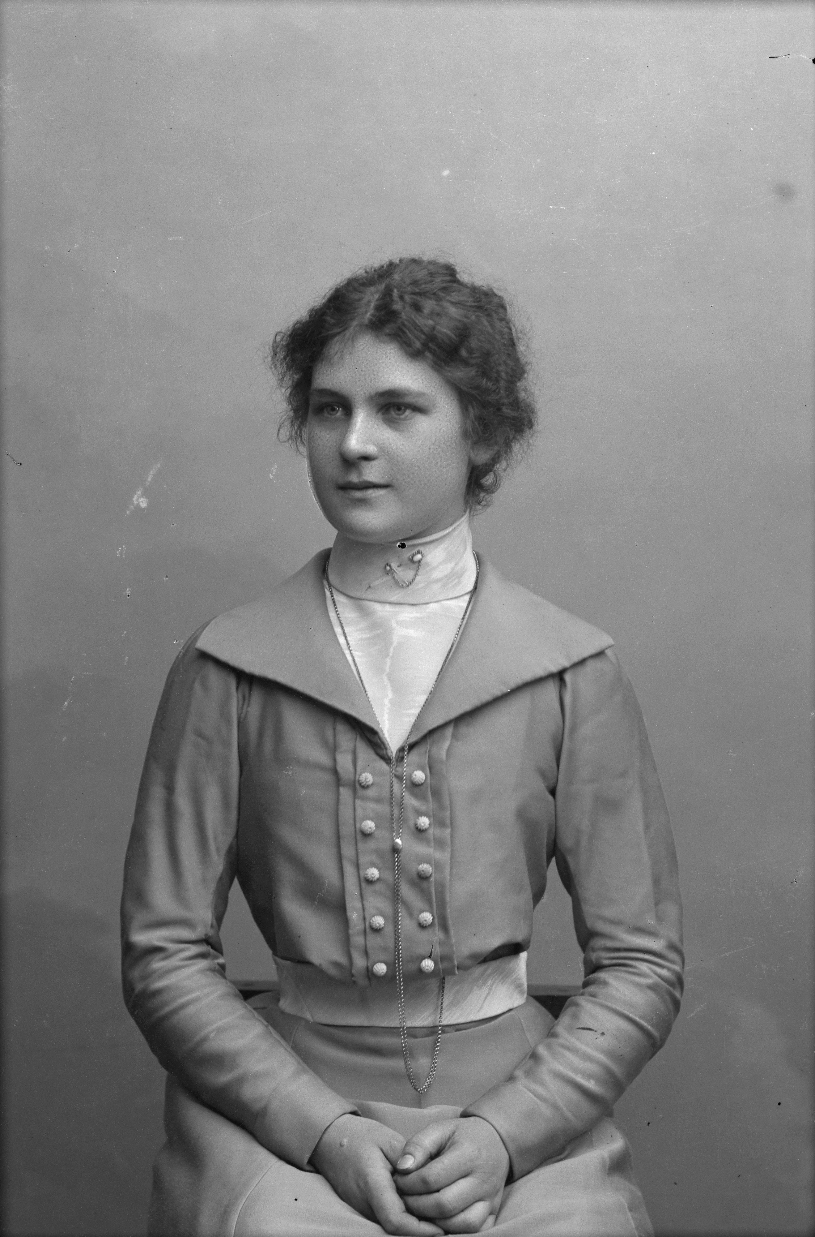 Beskrivning: Porträtt i halvfigur av fröken Zentio.