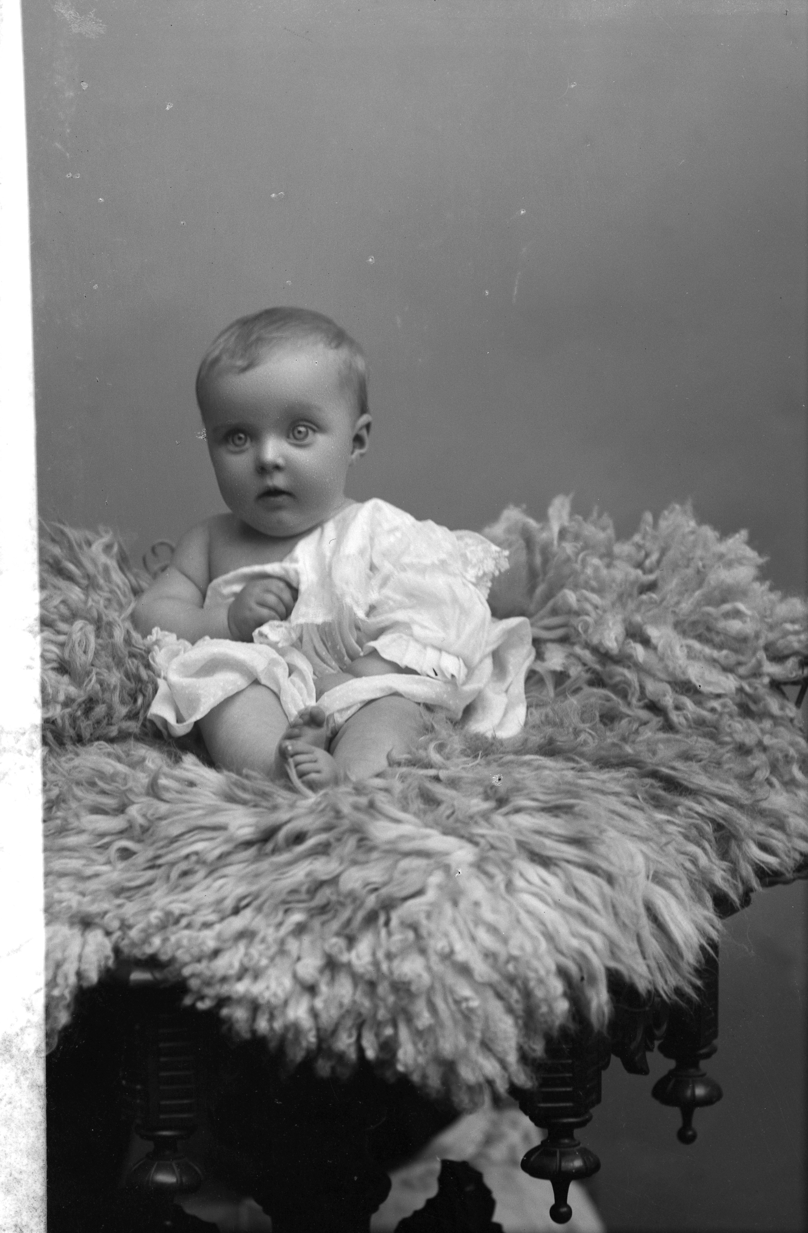 Porträtt i helfigur av Lundblads dotter, sittande på fäll.