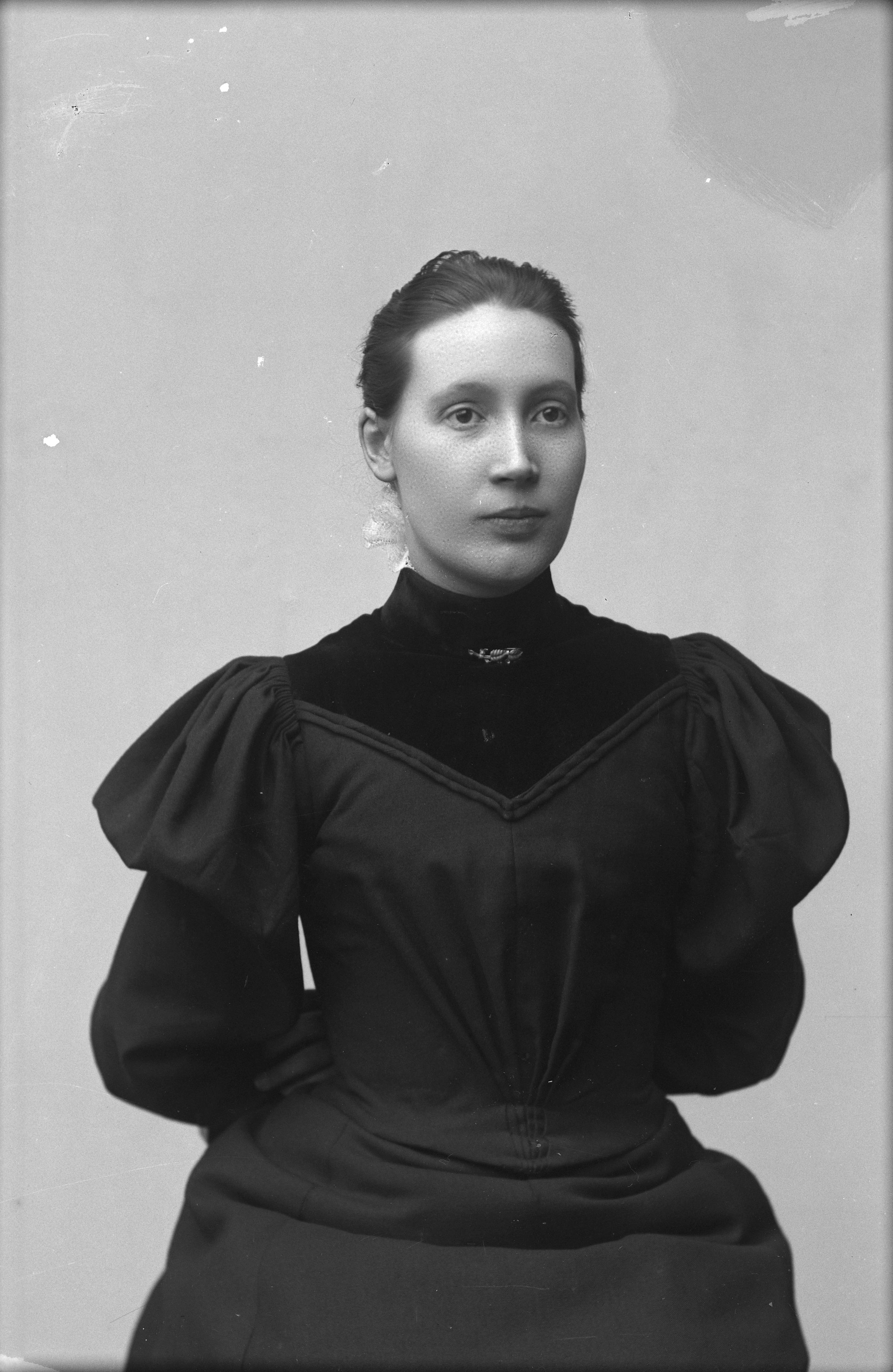 Beskrivning: Porträtt i halvfigur av Ida Jeppsson.