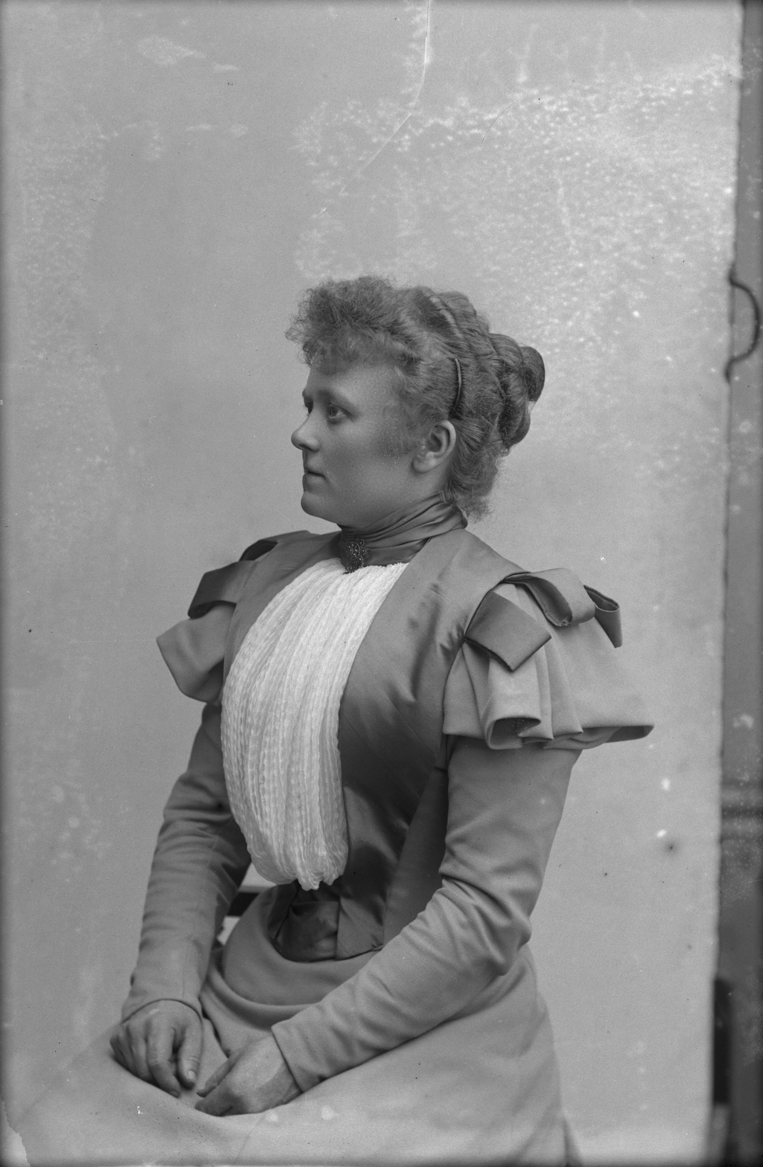 Porträtt i halvfigur av Augusta Berling, ansikte i profil.