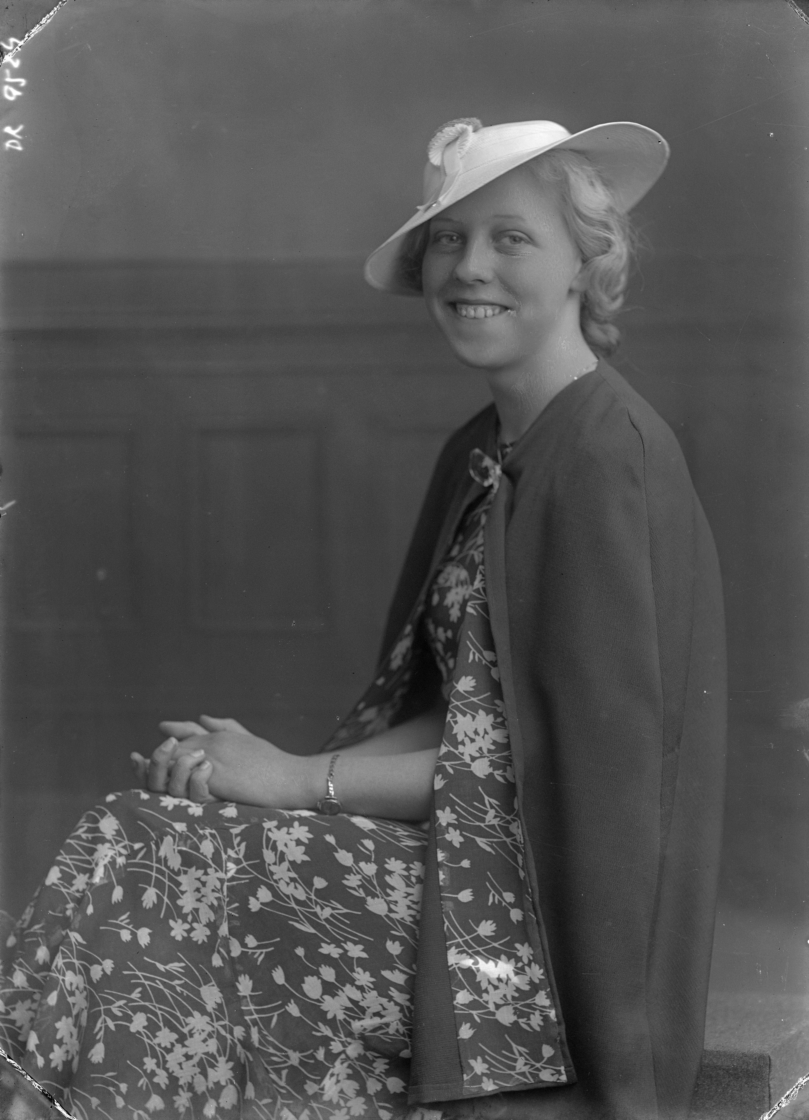 Beskrivning: Kvinna sittande katt [alternativt - hatt]