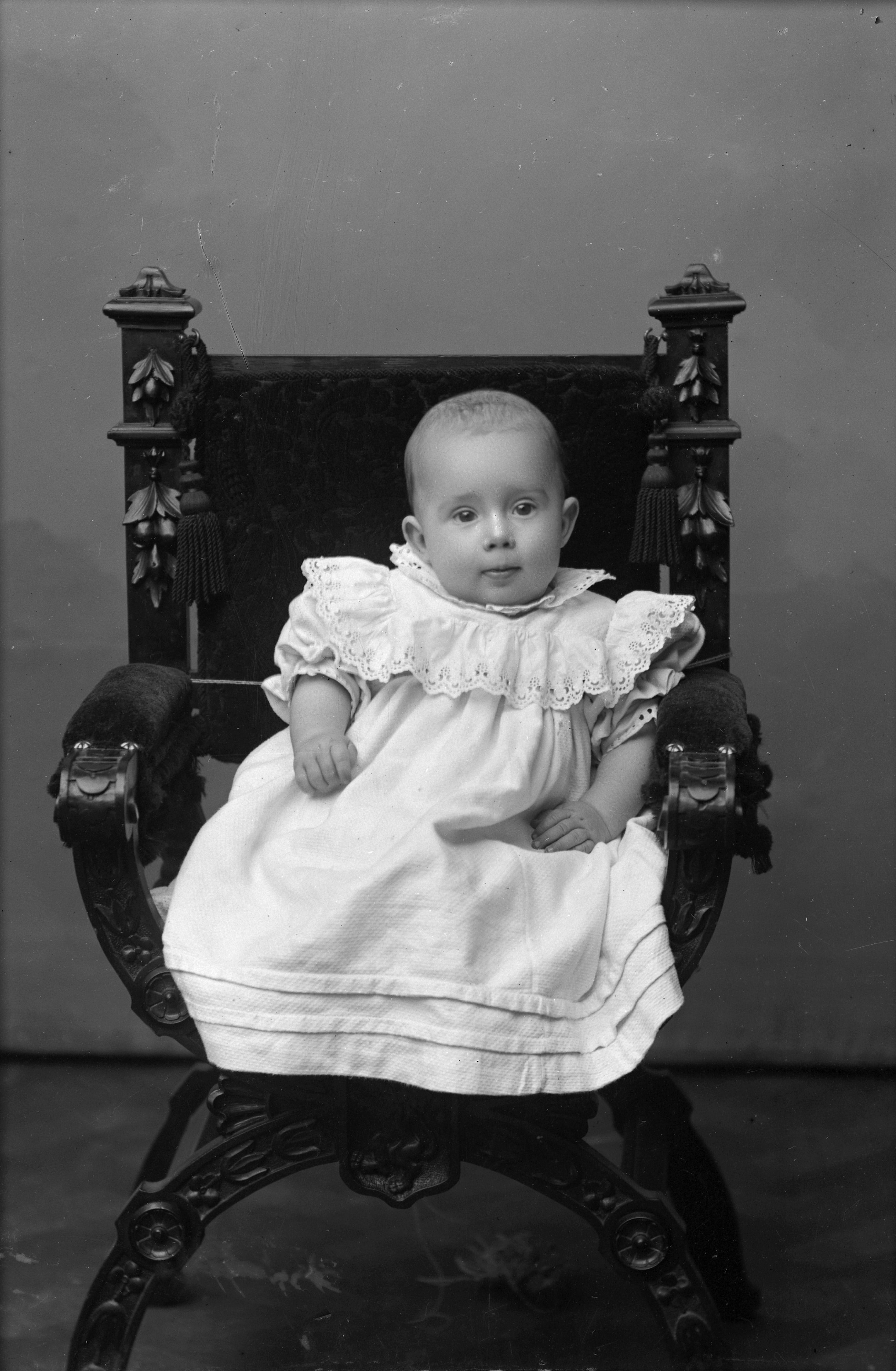 Porträtt i helfigur av Hulténs son, sittande i stol.