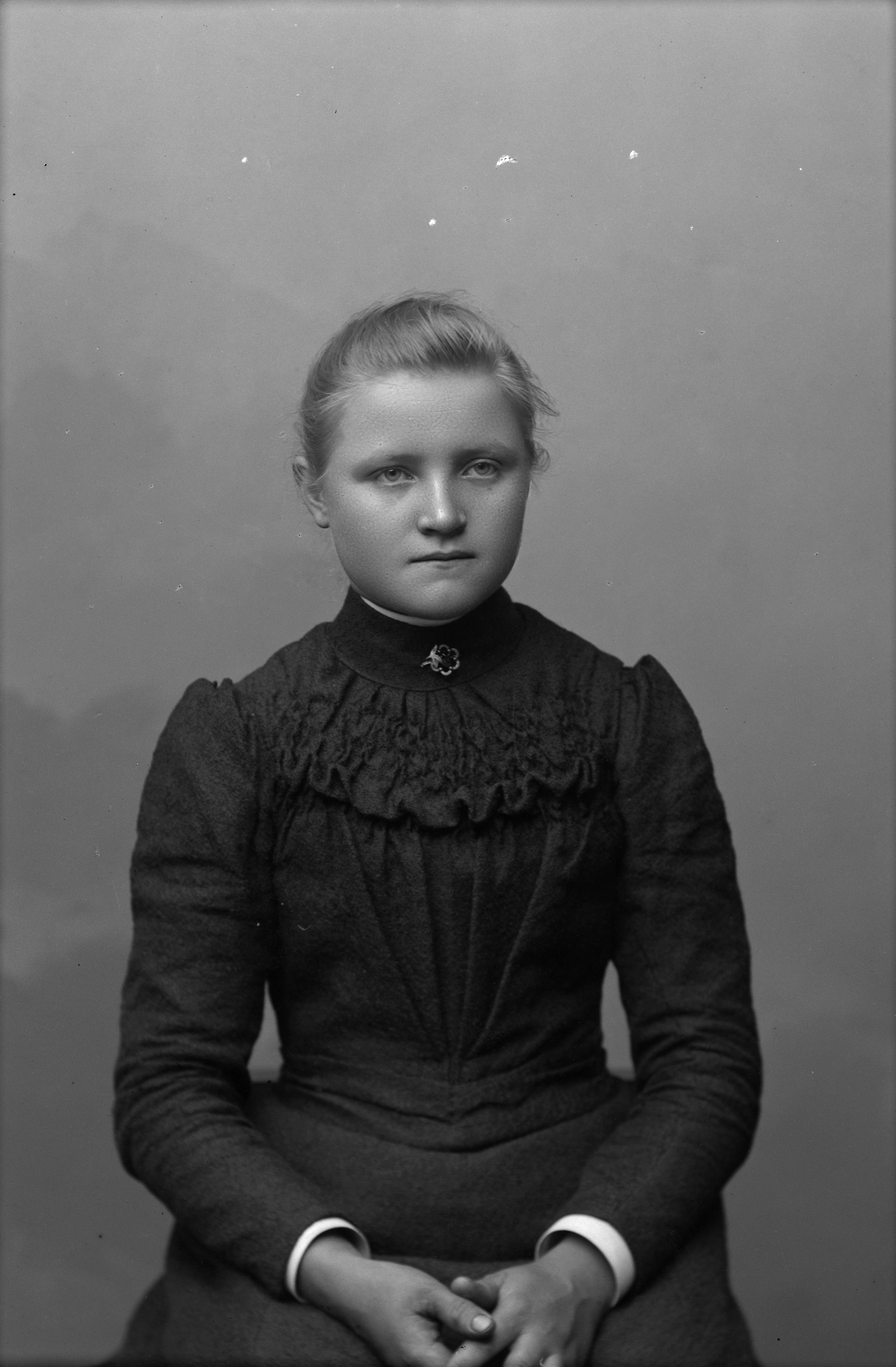 Beskrivning: Porträtt i halvfigur av Emma Ericsson.
