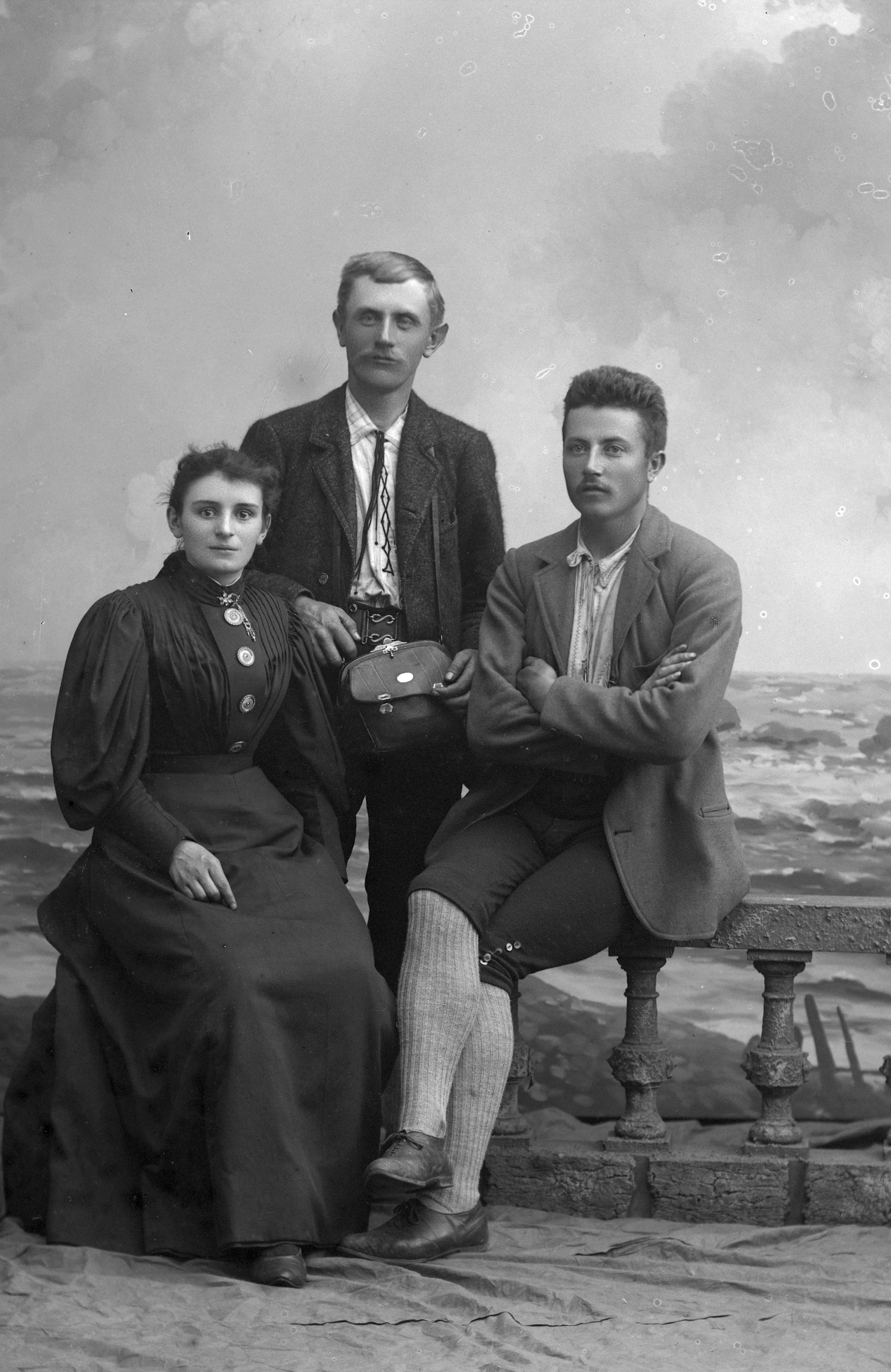 Beskrivning: Porträtt i helfigur av Mary Persson med okänt sällskap.