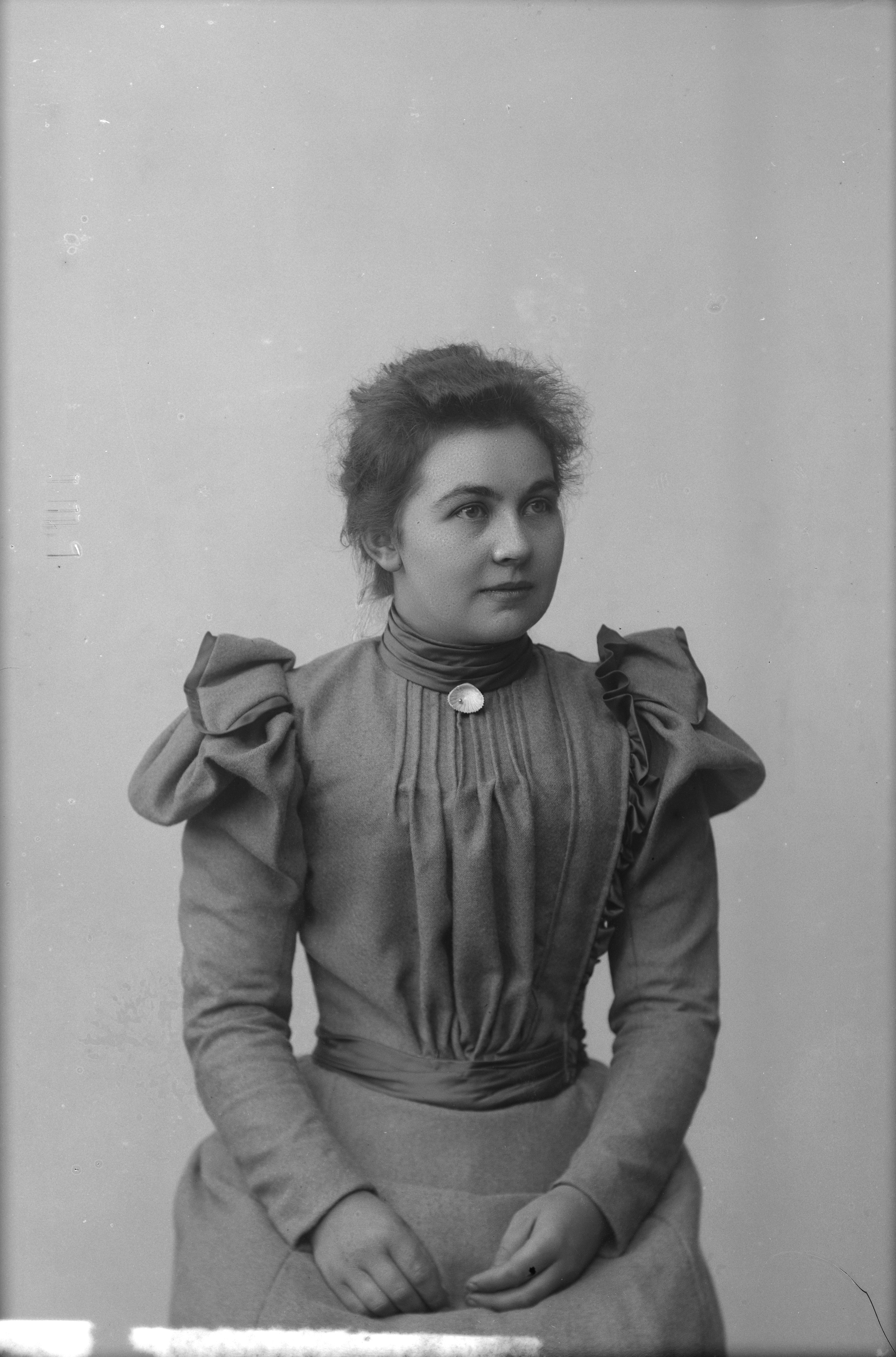 Beskrivning: Porträtt i halvfigur av Gerda Bergquist.