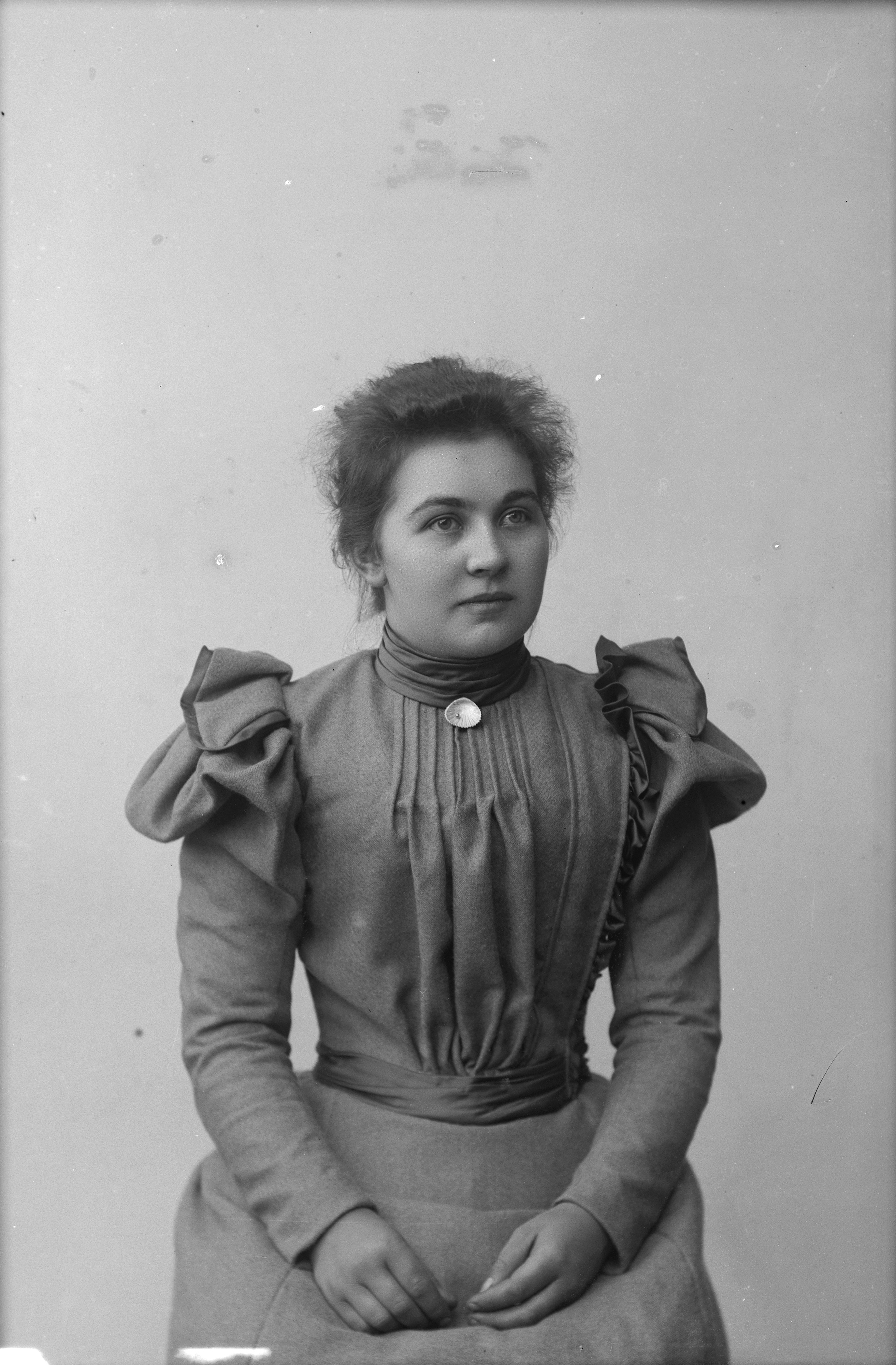 Beskrivning: Porträtt i halvfigur av Gerda Bergquist.