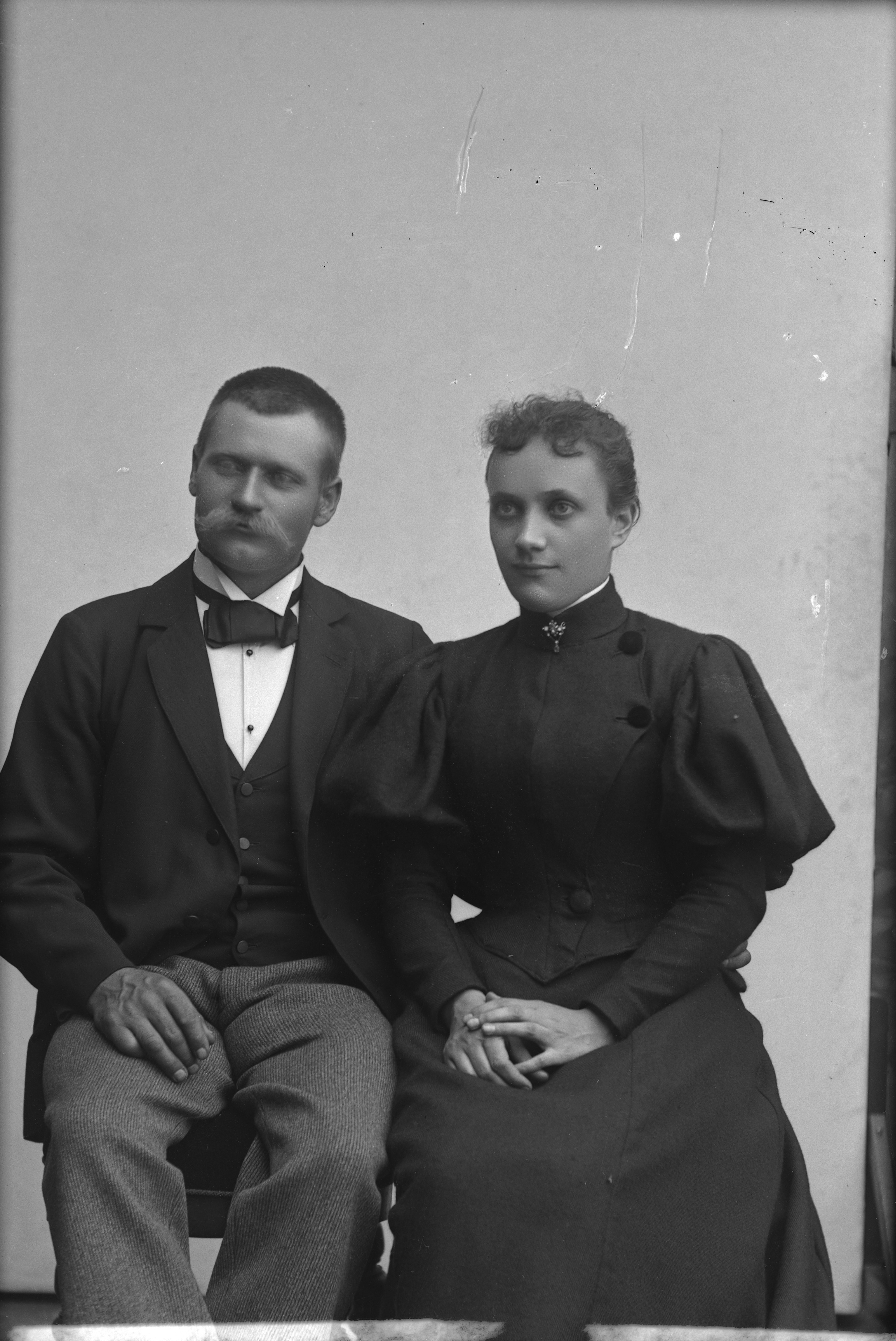 Beskrivning: Porträtt i helfigur av H. E. Jeppsson med fru.