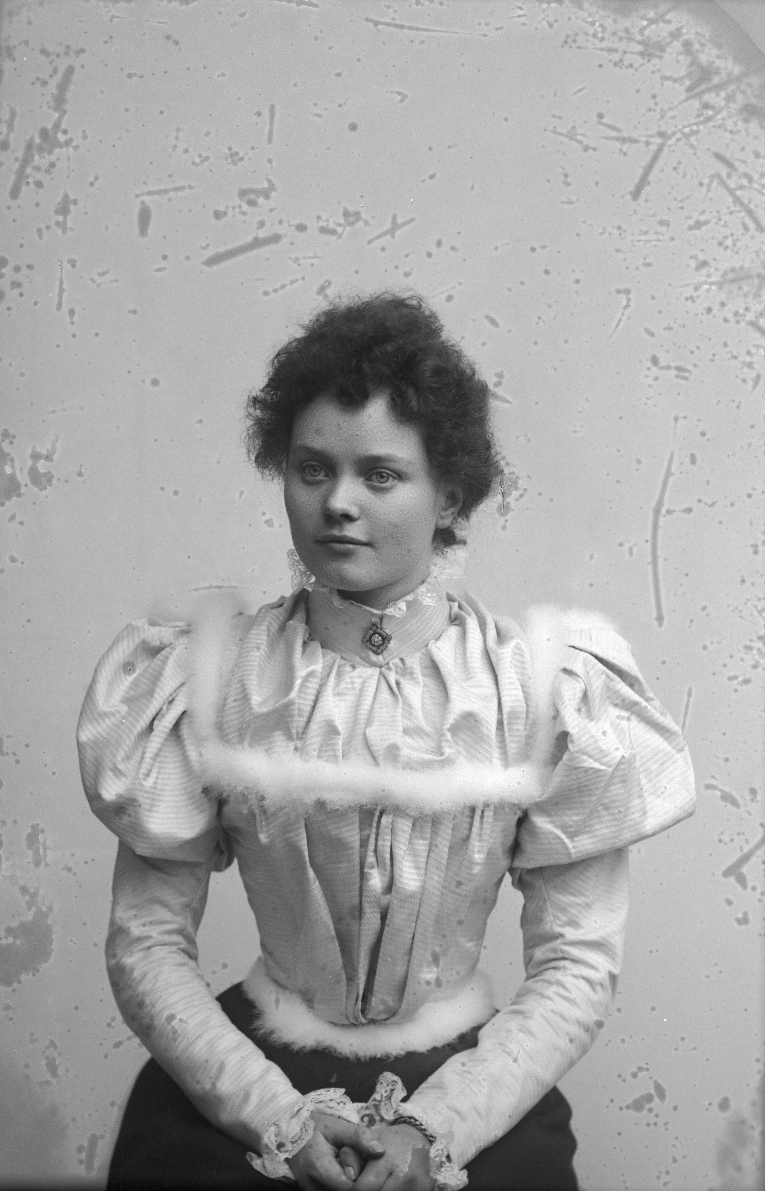 Beskrivning: Porträtt i halvfigur av fröken Lind.
