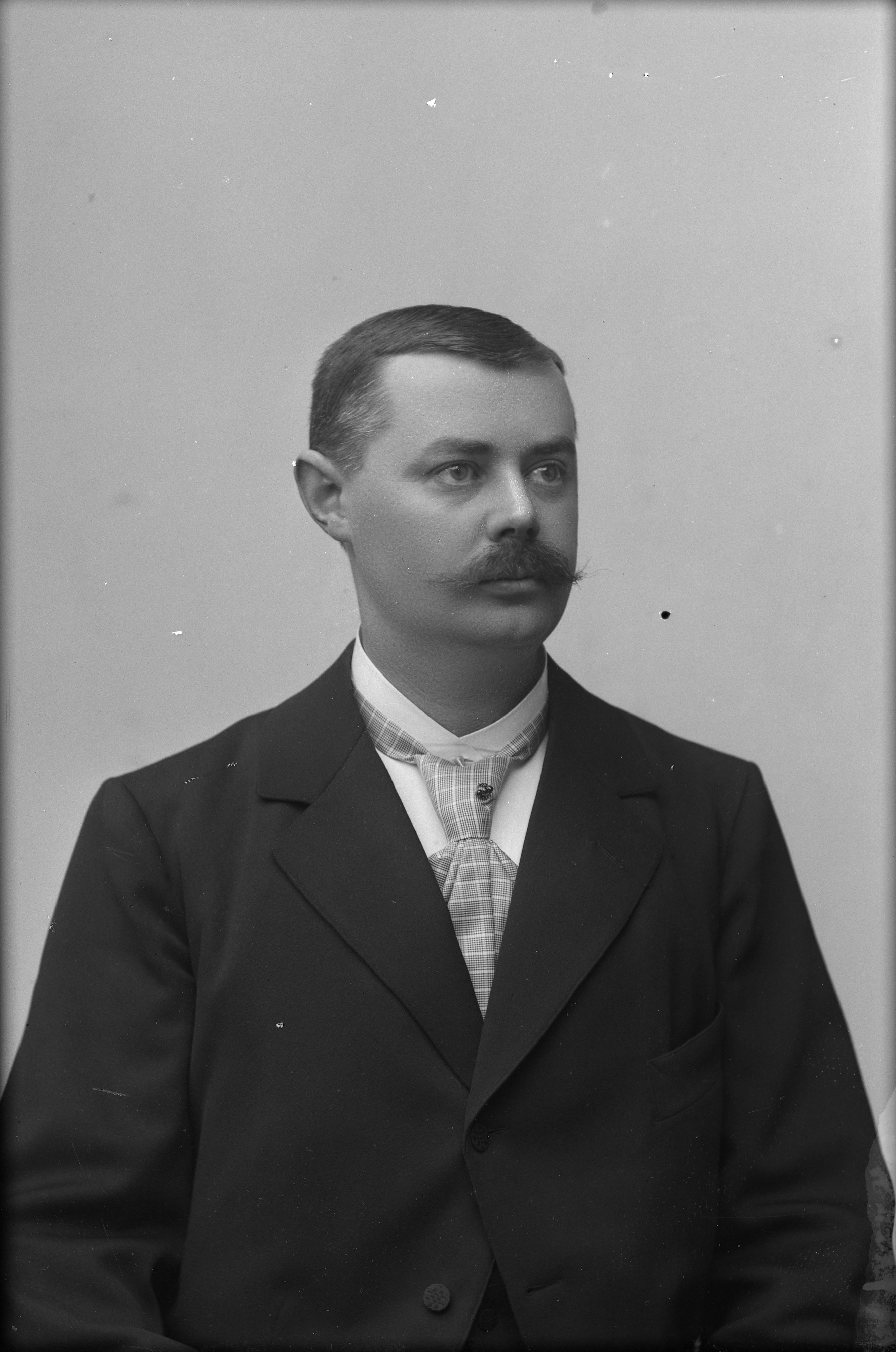 Beskrivning: Porträtt i halvfigur av Ernst Lundblad.