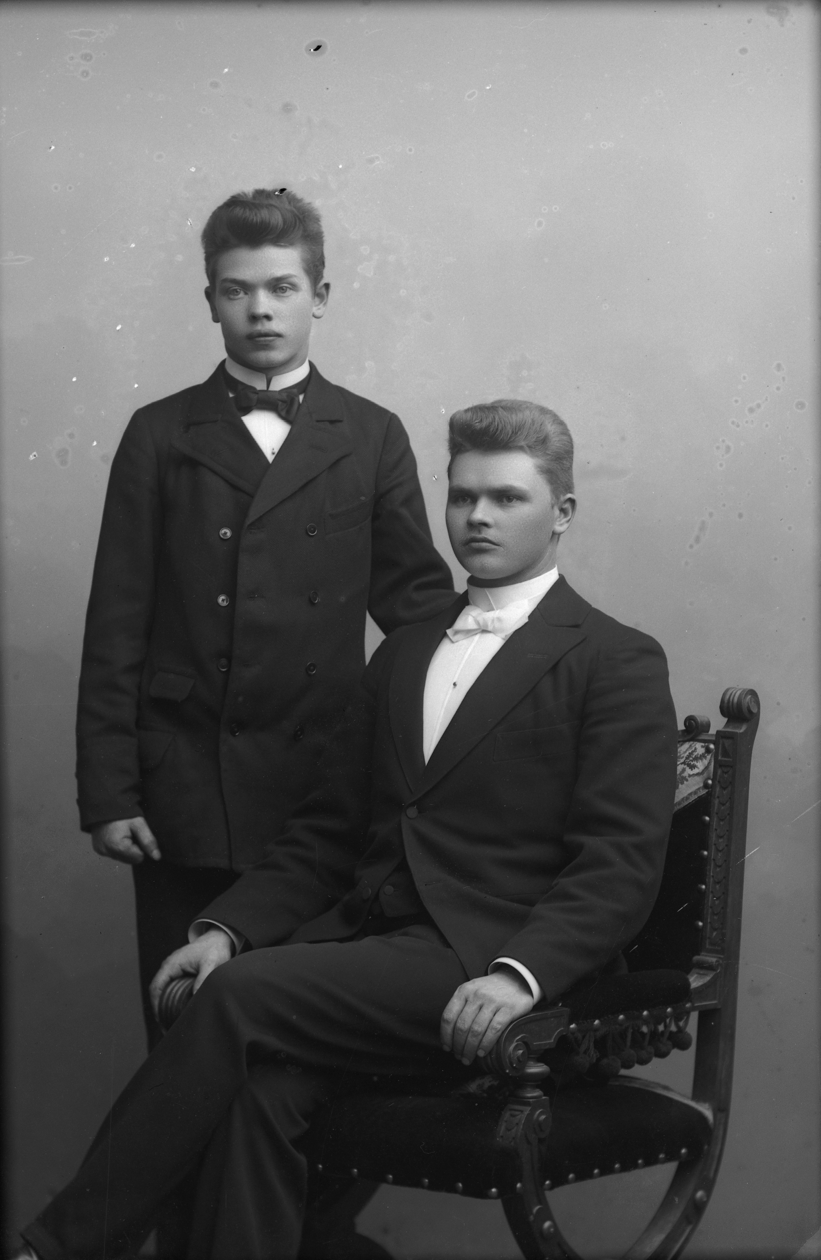 Beskrivning: Porträtt i helfigur av C. Möller med okänd man.