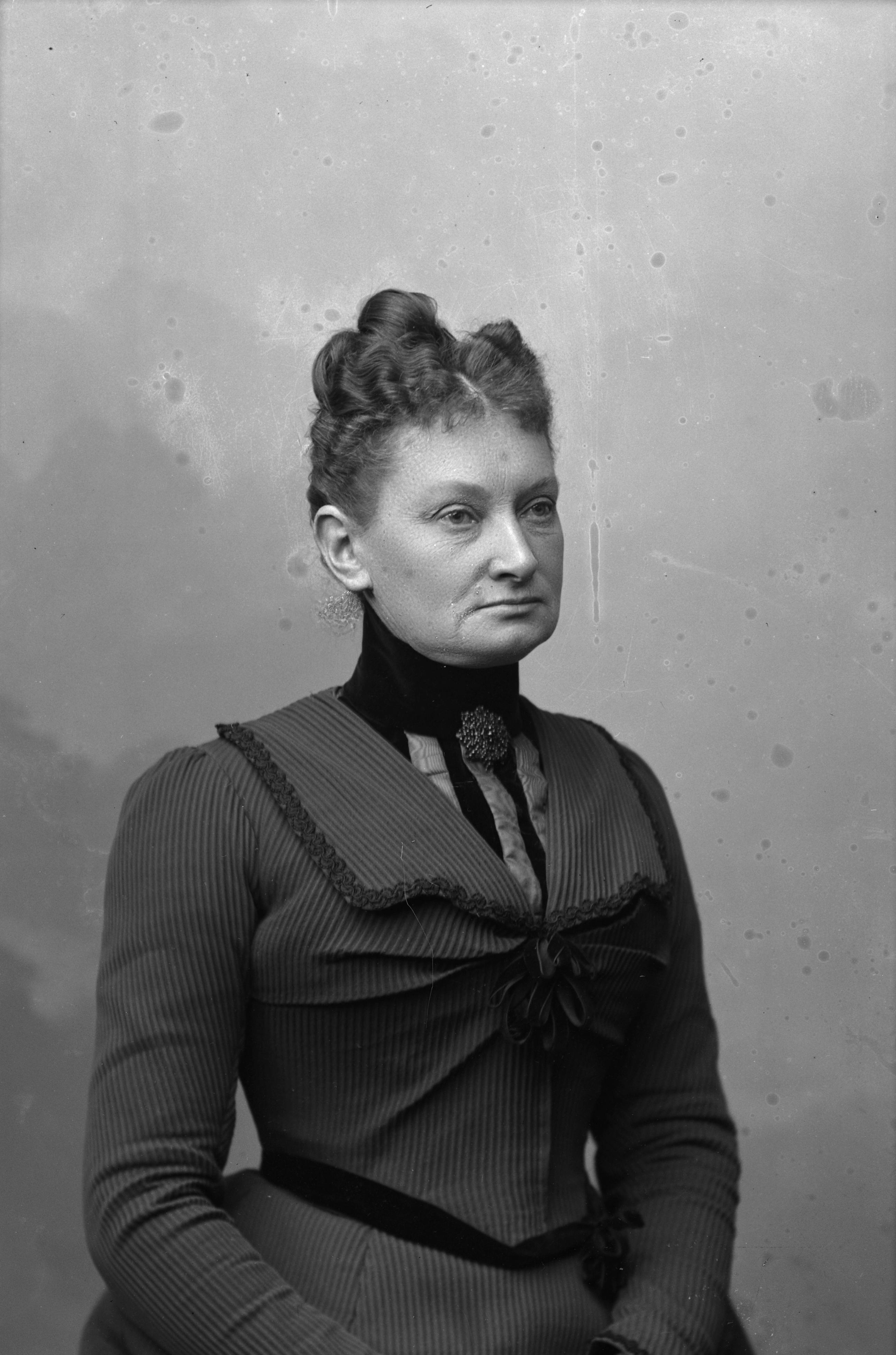 Beskrivning: Porträtt i halvfigur av fru Gruggel.