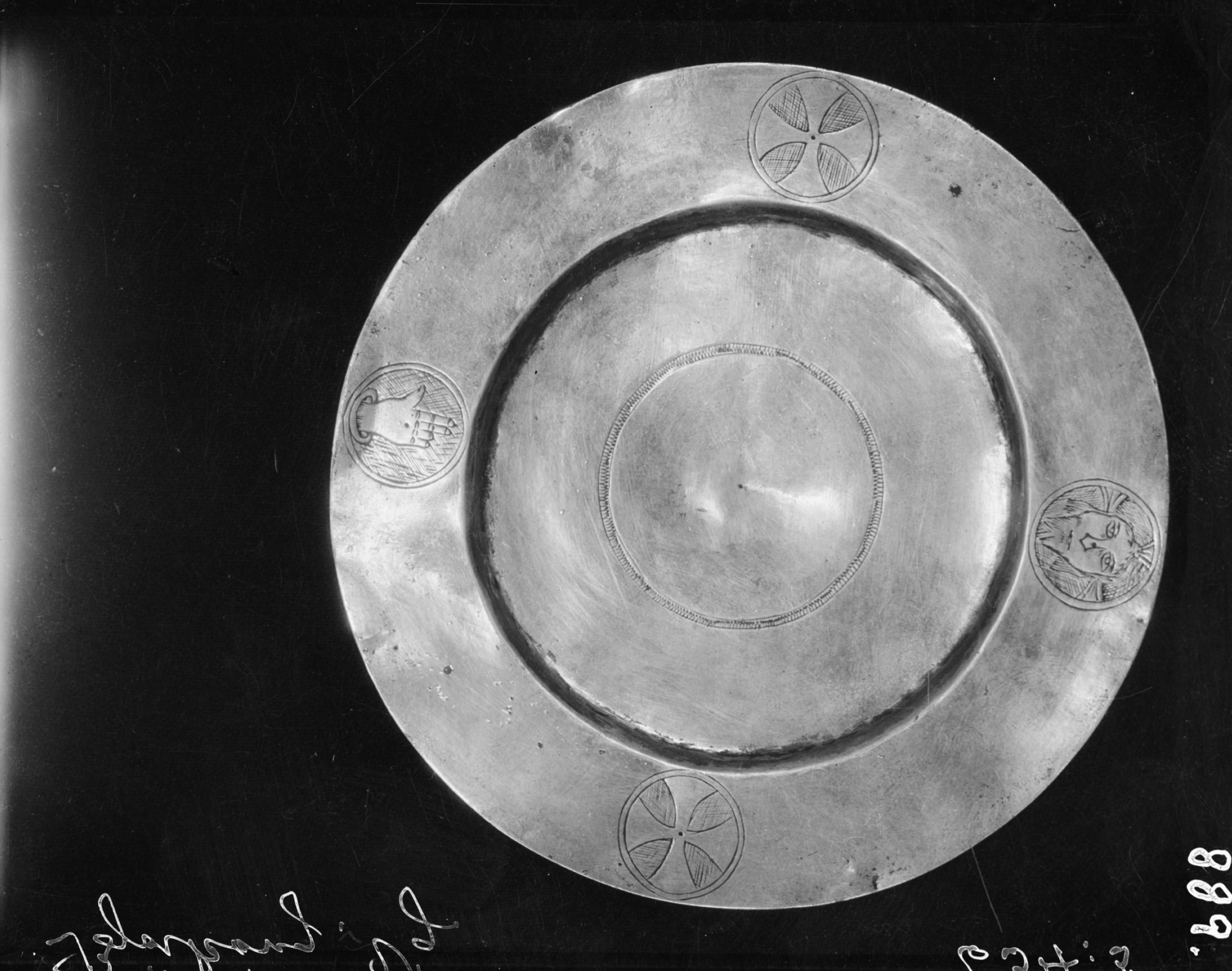 Patén, förgyllt silver, troligen från omkring 1500.