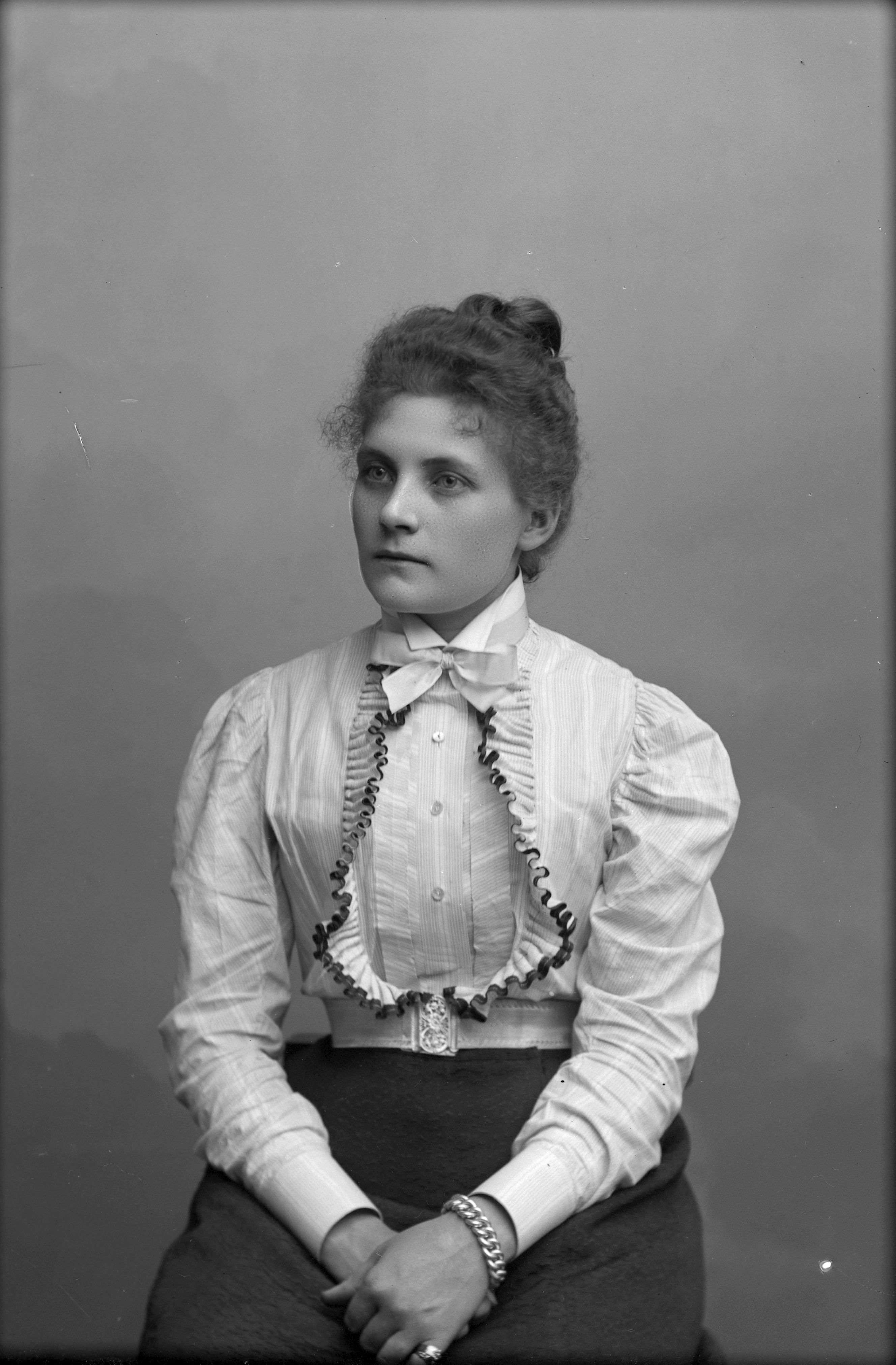Beskrivning: Porträtt i halvfigur av Carolina Palmgren.