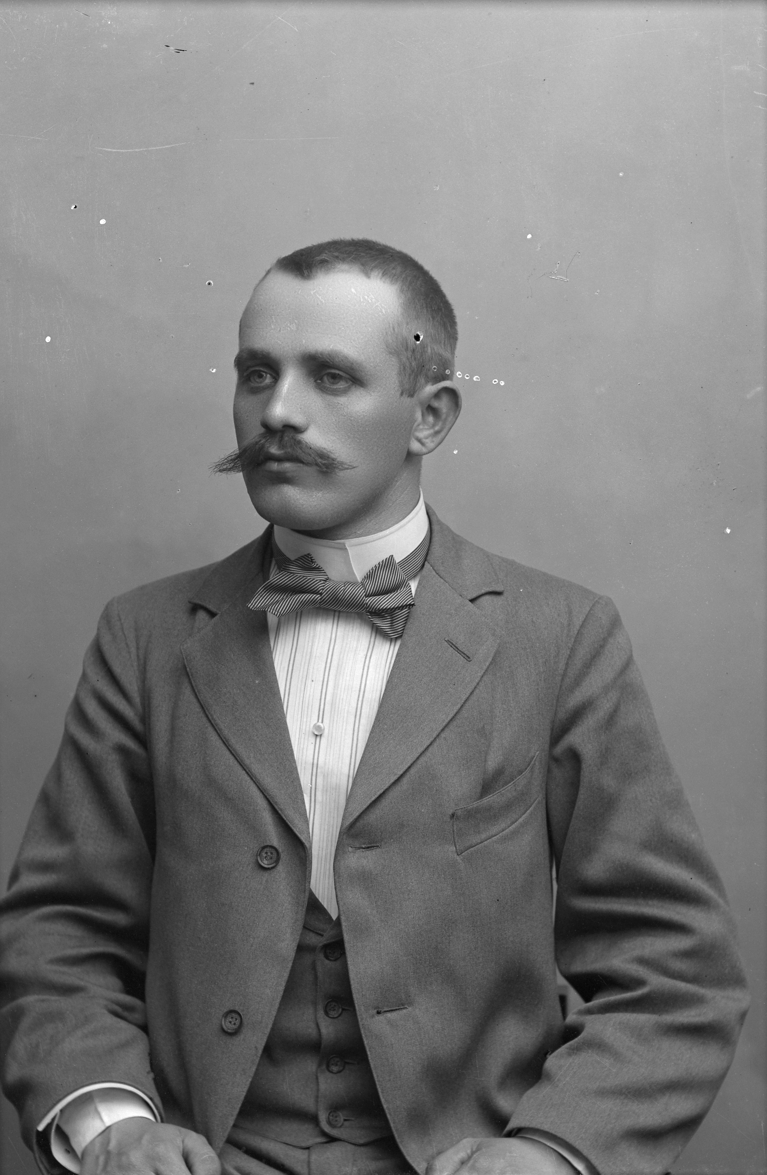 Beskrivning: Porträtt i halvfigur av L. Sjöström.