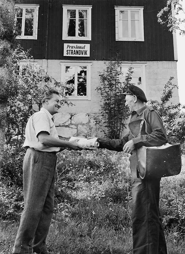 Posten till pensionat Strandvik på Södermöja, tas emot av Torsten