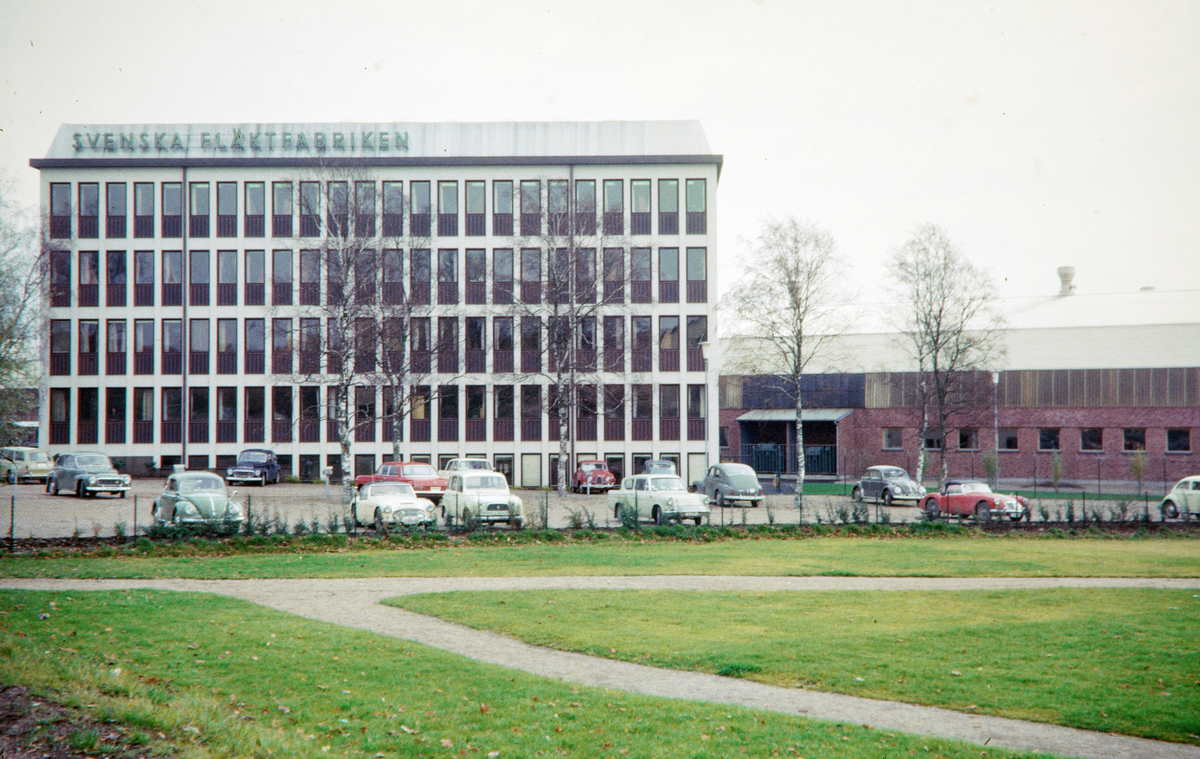 Titel: Svenska Fläktfabriken, Öster, Växjö. Färgfoto ca 1970.