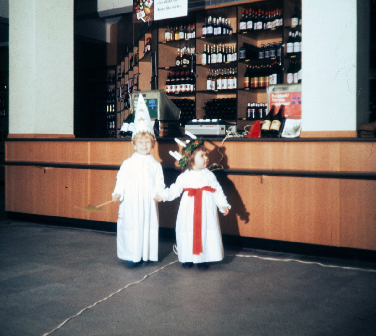 Luciafirande på Systembolaget, Växjö. Patrik och Petra Widell som stjärngosse och Lucia.