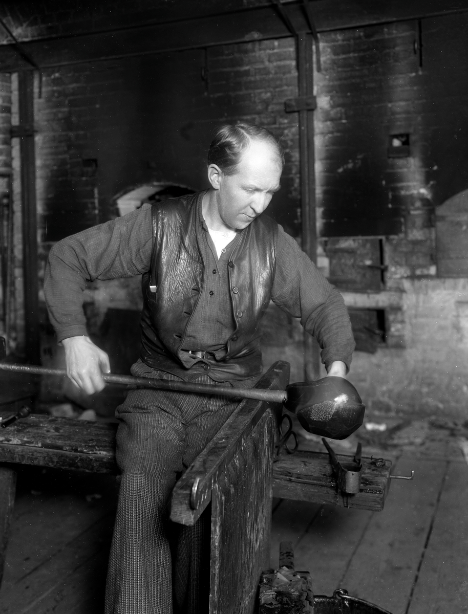 Hilding Strand formar ett ämne. Strömbergshyttans glasbruk, 1935.