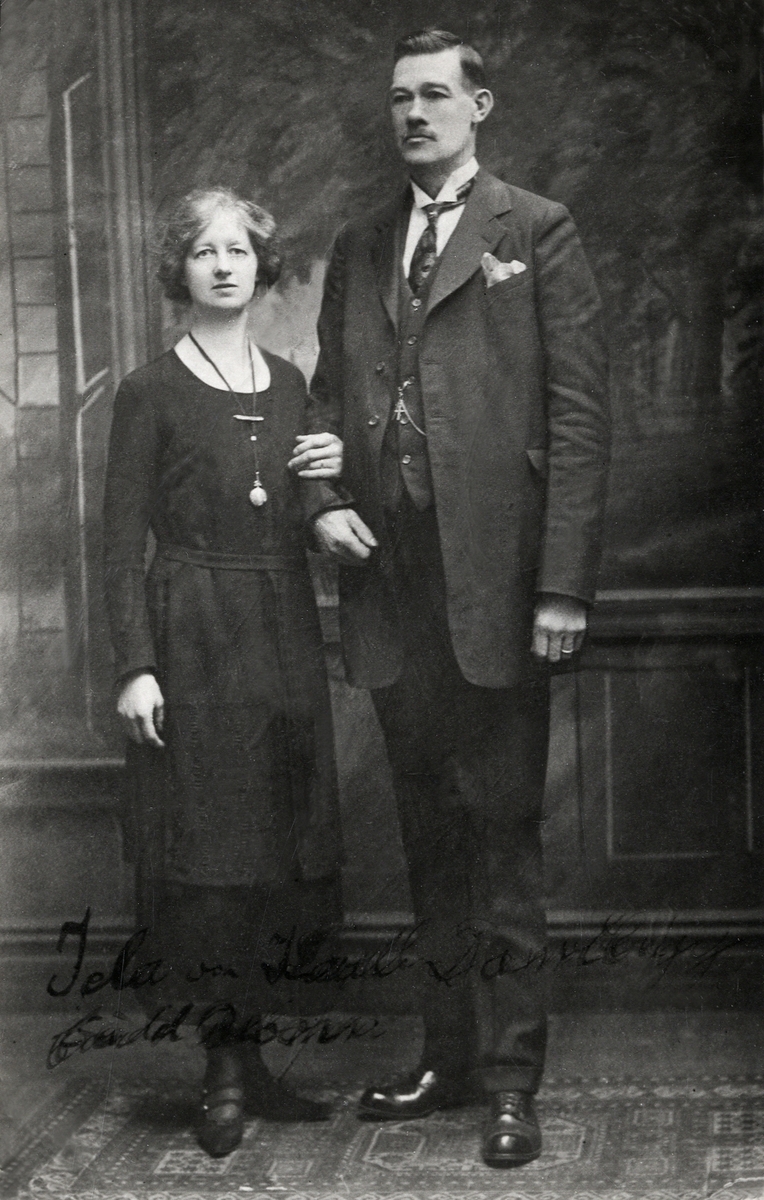 Makarna gifte sig 1922. Helfigur, ateljéfoto.