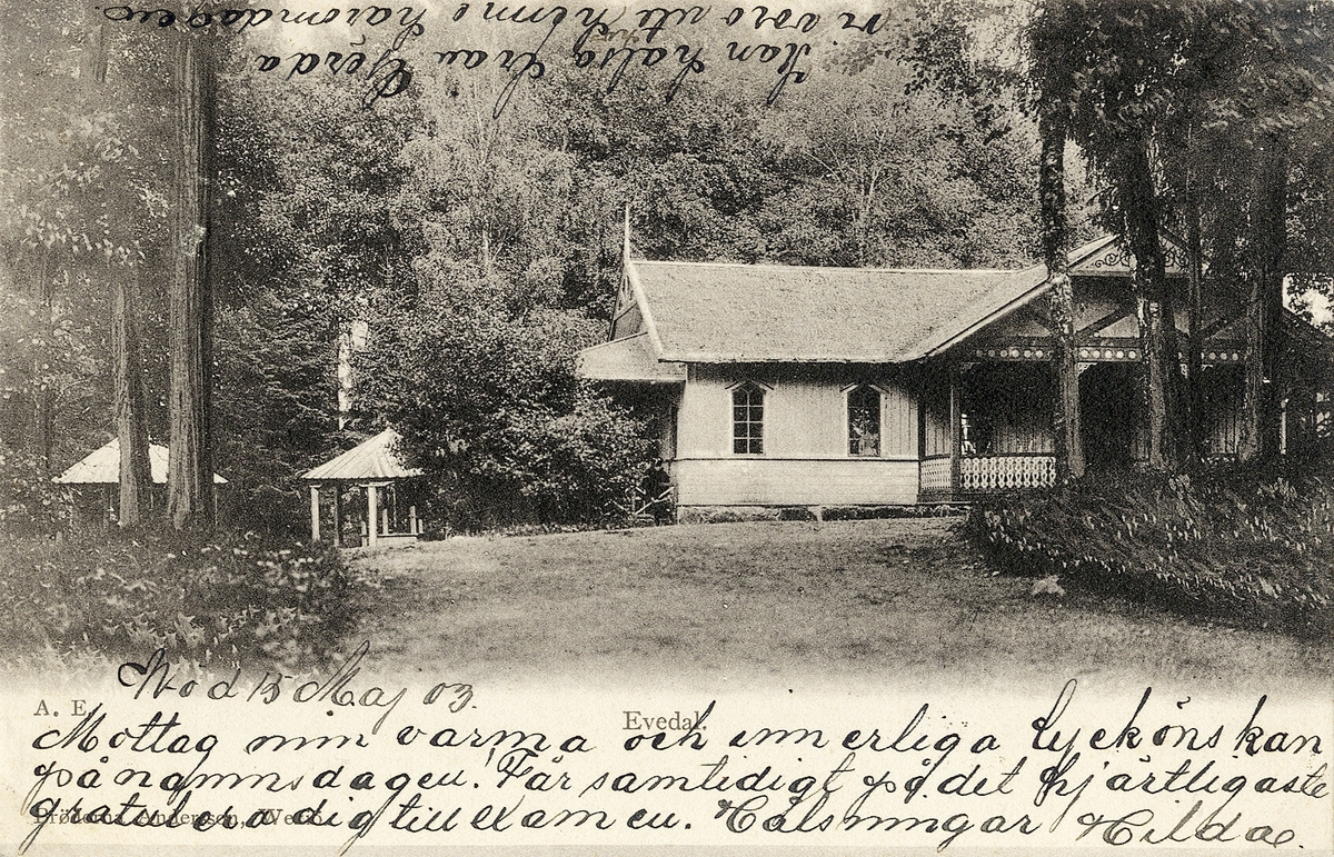 Evedals hälsobrunn. Brunnssalongen med mindre paviljonger, 1903.