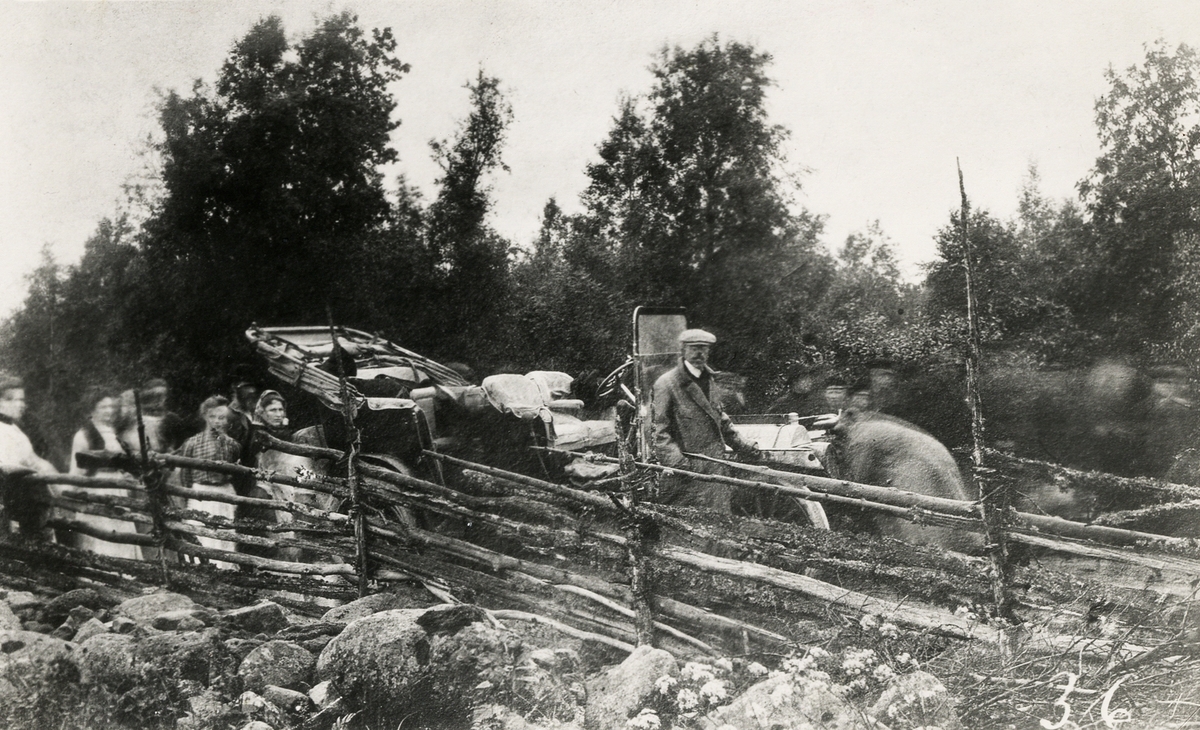 Kungligt bilstopp år 1907 på länshuvudvägen Växjö-Jönköping, vid Fagerås i Bergs socken.