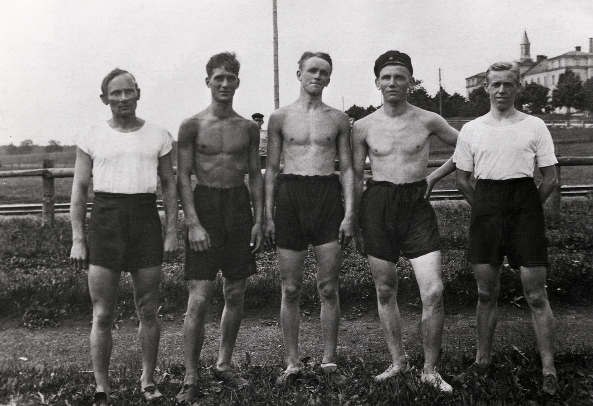 Friidrott, gamla idrottsplatsen, Växjö. I bakgrunden skymtar dåv. dövstumskolan.