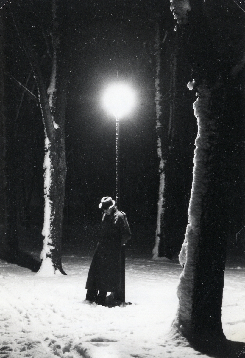 En nattvandrare i Linnéparken, Växjö, ca 1950.