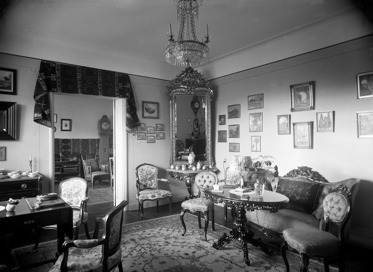 Häradshövding Tor Ahlströms hem på Trädgårdsgatan 14 i Växjö. Interiör av salong.