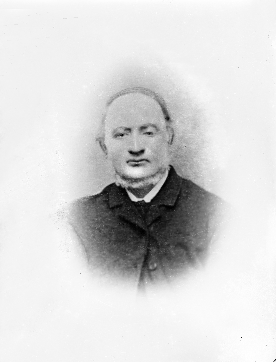 Äldre man med skägg. Ateljéfoto, sen reprofoto.