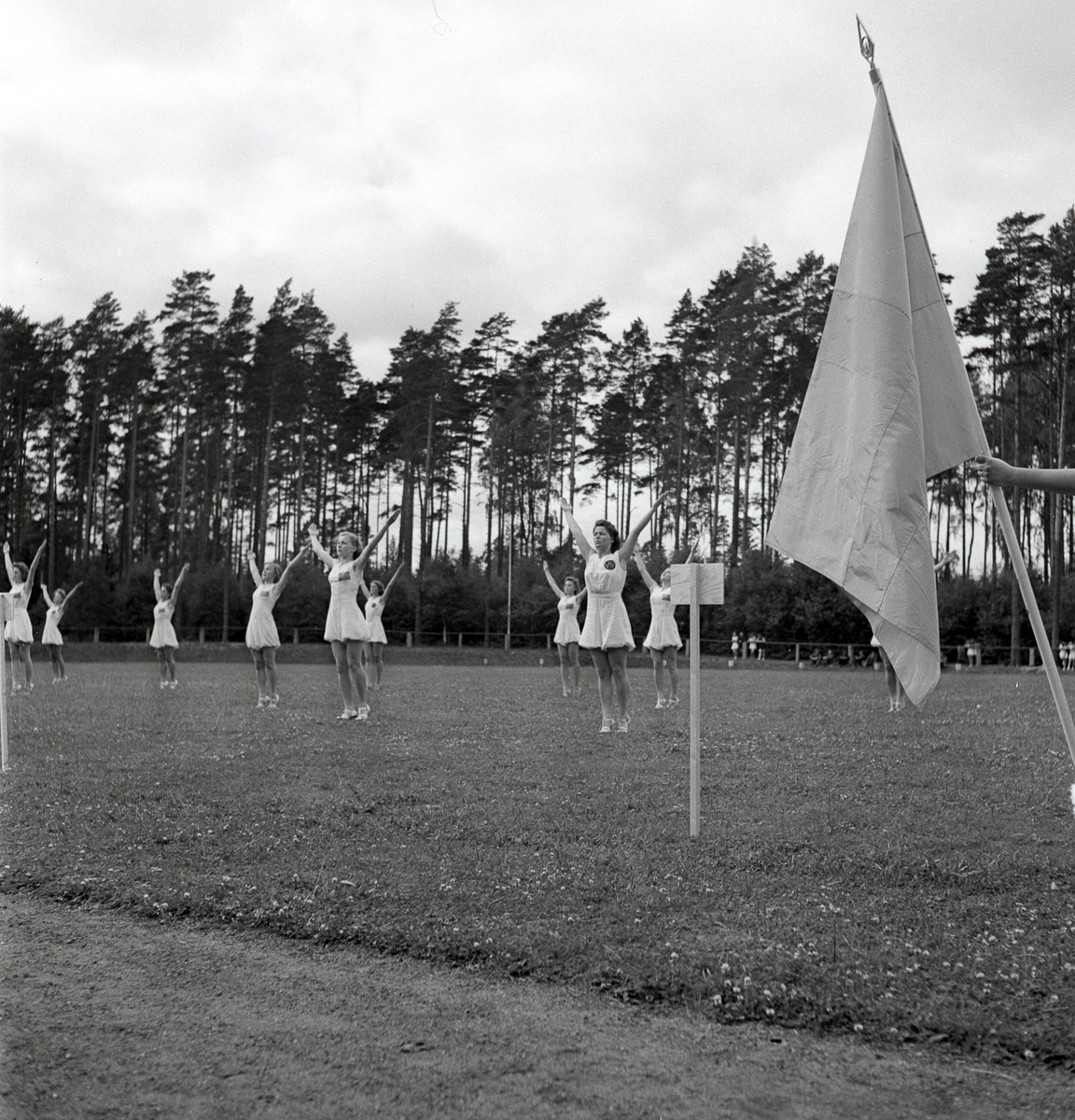 Uppvisning, truppgymnastik av kvinnliga gymnaster på Gymnastikens dag.