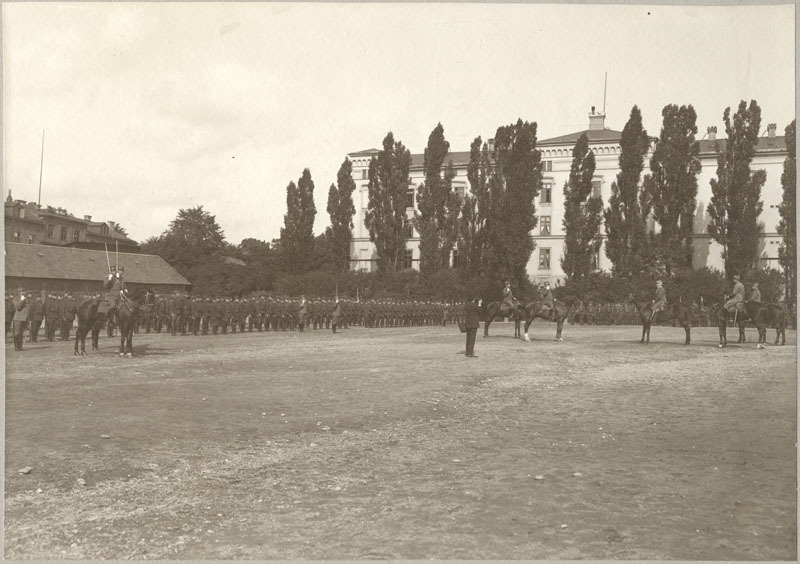 Titel: Jaktvarvet kasern trupp uppställd 1920