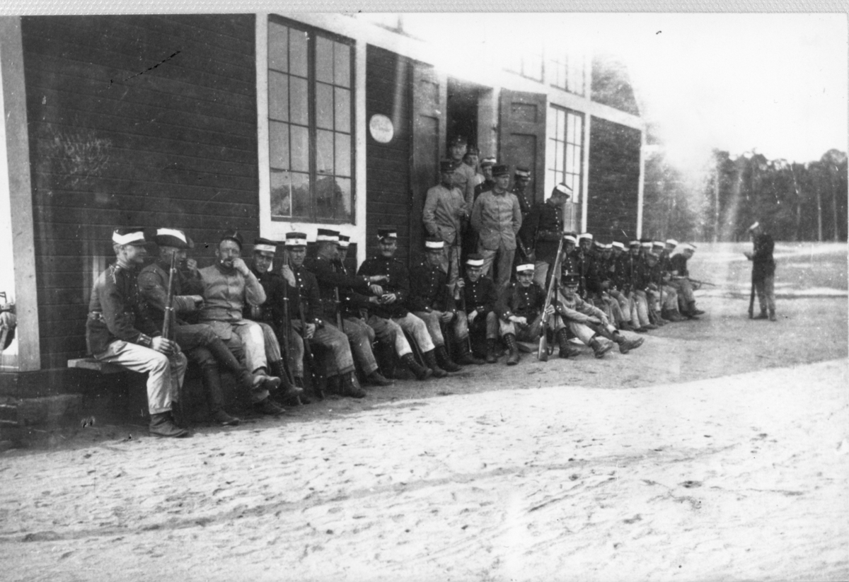 Titel: Rast vid mellersta lägerhyddan på södra fältet omkring 1915