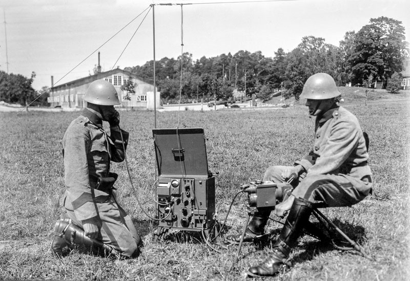 Radiostation. Artelleri-station, upprättad på fotbollsplan i Frösunda juli 1936