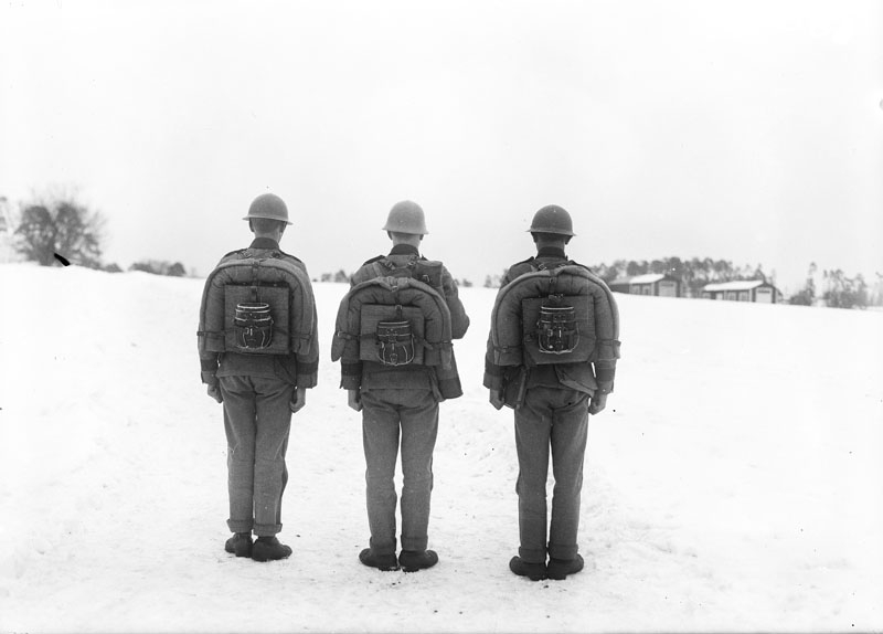 Radiostation bärbar 1 W, marschfärdig sedd bakifrån