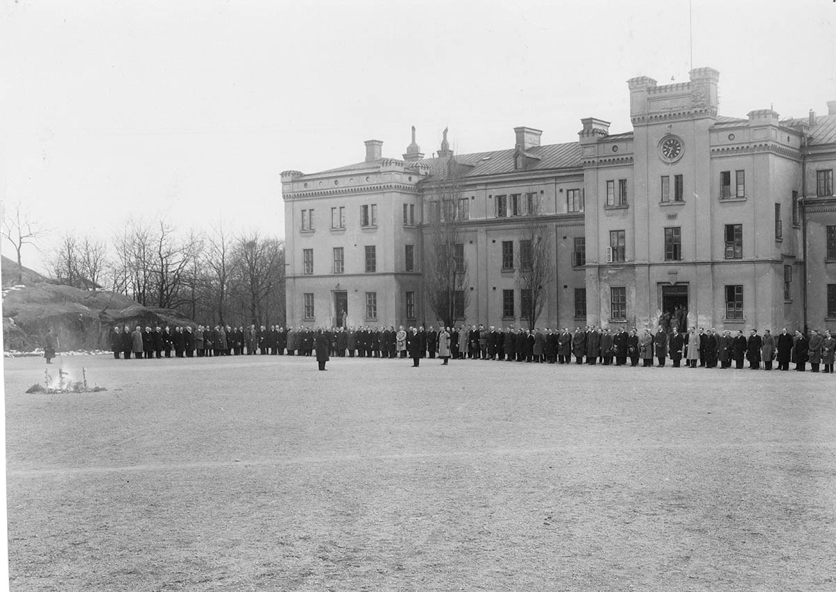 Titel: Signaltruppernas kamratförening uppställd framför kasern Marieberg