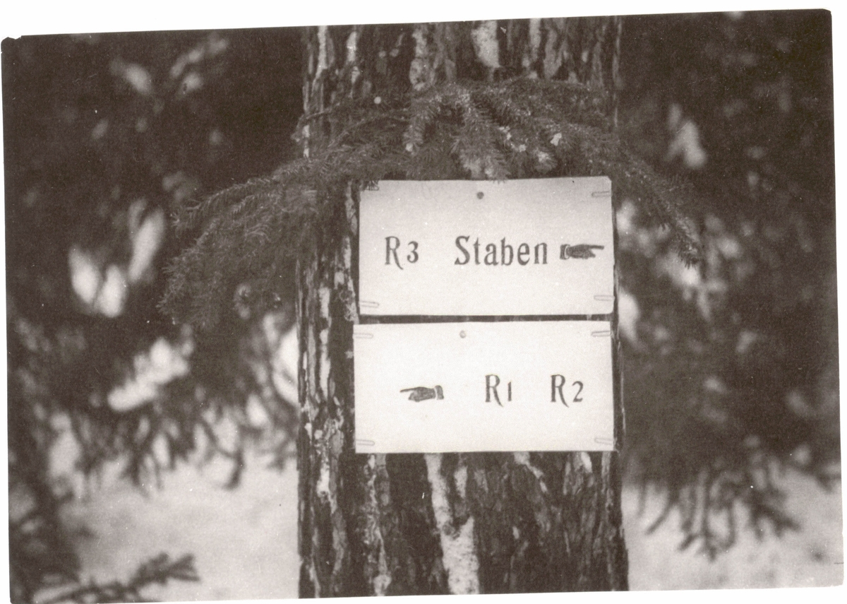 Titel: Förläggningsplats under vinterövning. Vägvisning för staben