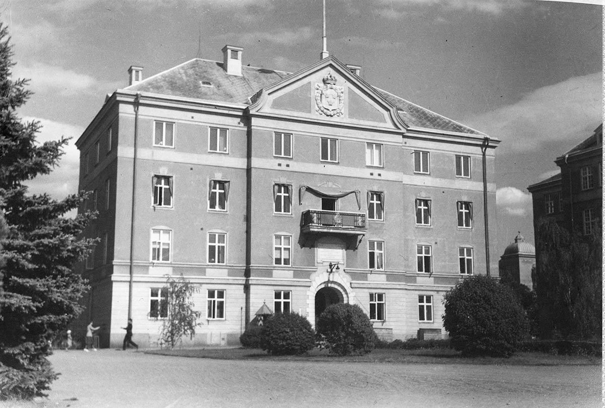 Titel: Uplands infanteriregemente. Kanslihuset med officersmässen. Sedd från utsidan av kaserngården