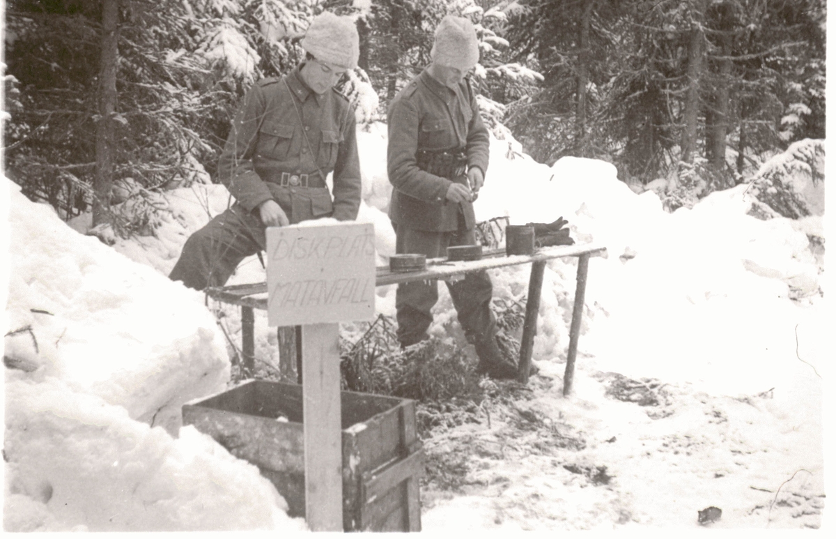 Titel: Förläggningsplats under vinterövning. Diskplats