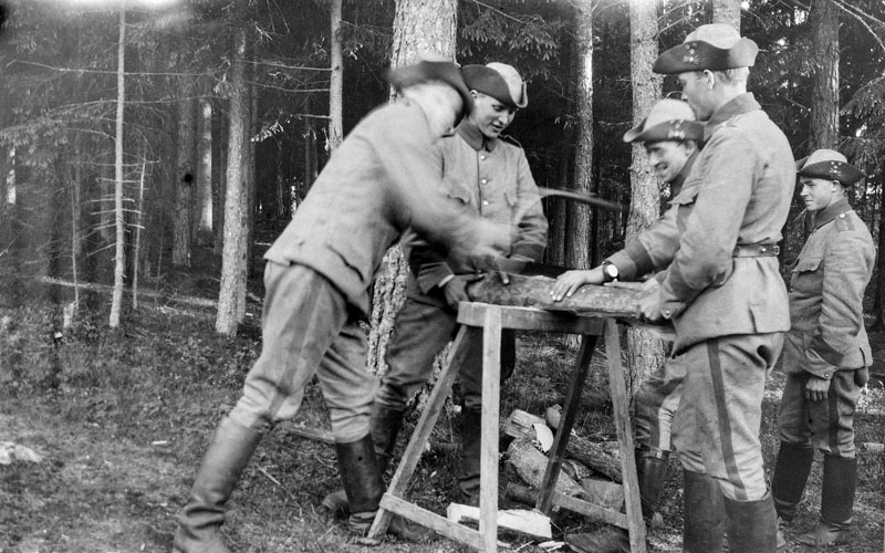 Augustimarsch i Boden, Lägerbild (vedsågare i m/10)