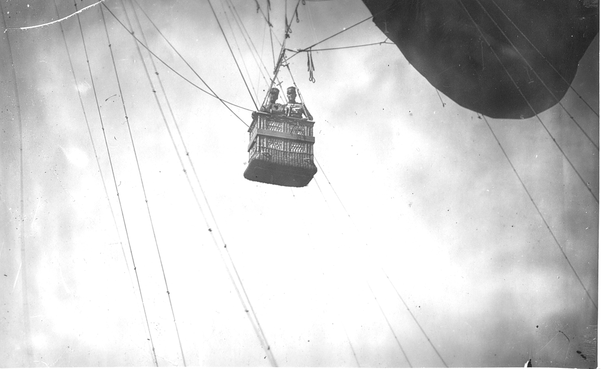 Ballongövning vid Norra Frösunda. Lt Jetzel, Sundberg i korgen.