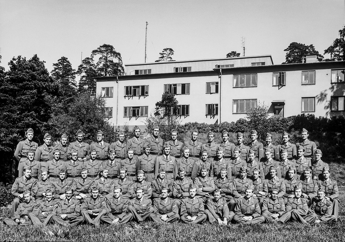 S 1 4. kompani plutonchefsskolan 1949 med lt Sylvén, kn Dahlström, lt Norberg.