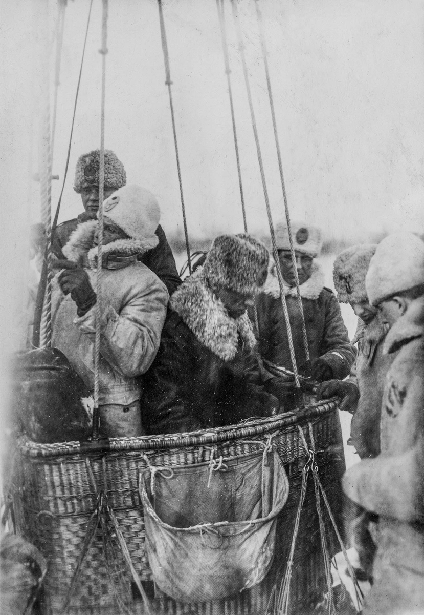 Frifärd i Boden. I korgen: Ekelöf, Jetzel och Johnsson. Bakom korgen: Hansson. Ballong