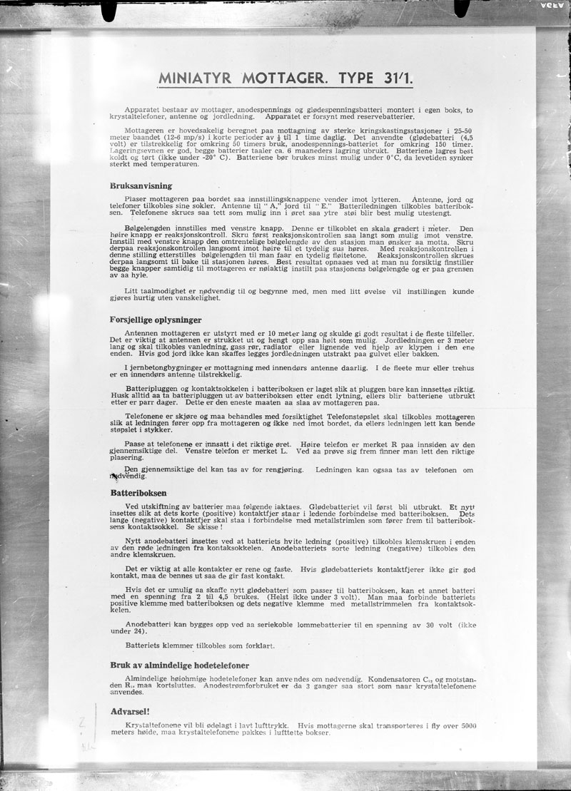 Miniatyrmottagare typ 31/1, Instruktion