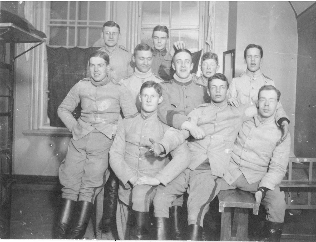 Officersaspirantskola 14 oktober 1915-21 juni 1916 överst från vänster Per Svartling, Ture Stockenberg. Mellersta från vänster Nils Boving, Eric Wiche, Nils af Kleen, Kjell Magnell, Gunnar Kjellberg. Underst från vänster Anton Bexelius, Nils Johansson, Eric Egnell