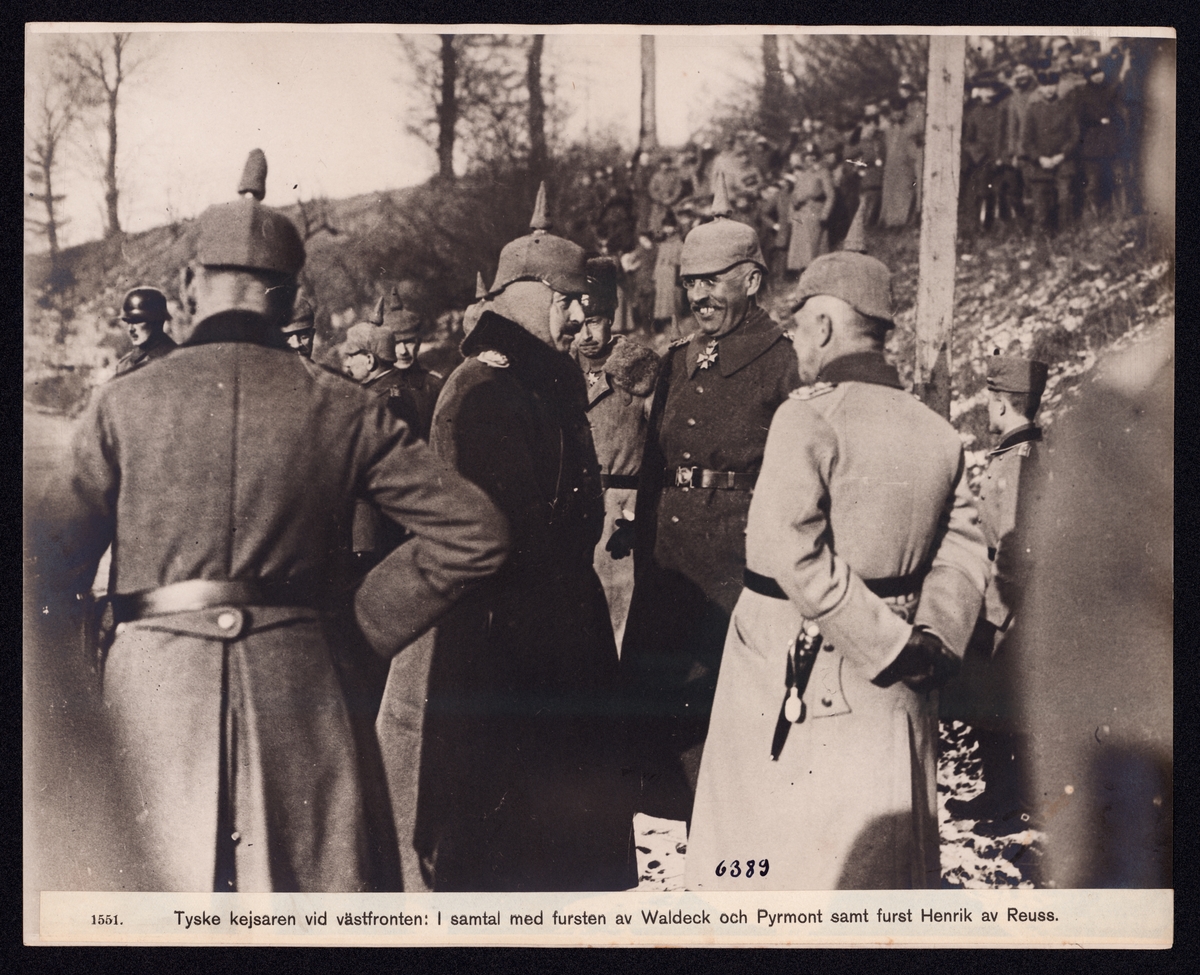 Titel: Bilden visar den tyske kejsaren Vilhelm II i samtal med två tyksa fursten i fältet.