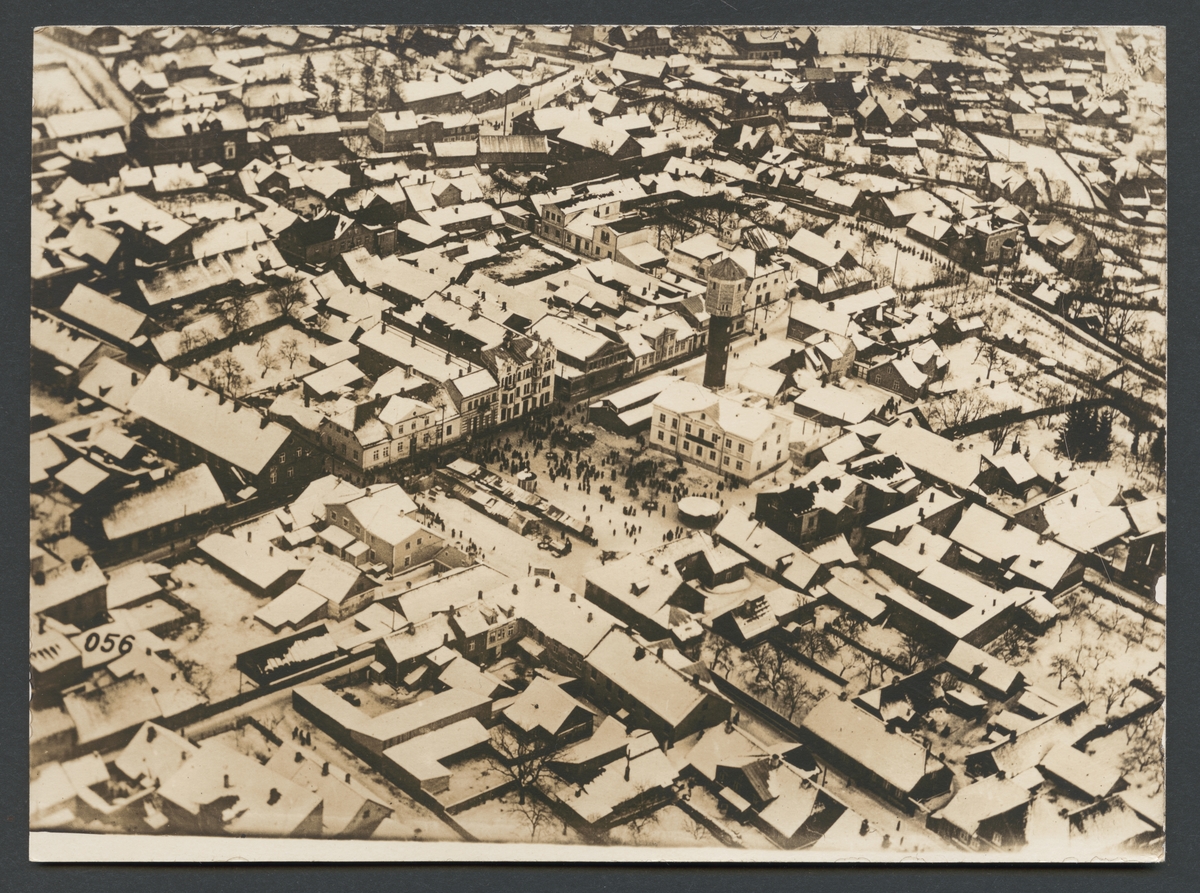 Titel: Originaltext: "Tyska trupper på torget i Fellin i Livland. Fotografi tagen av en tysk spaningsflygare."