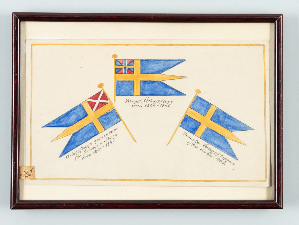 Titel: Sammanställning av svenksa örlogsflaggor för tidperioderna 1815-1844; 1844-1905 och efter 1905.